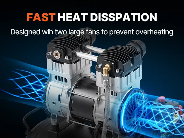 Con un diseño avanzado de enfriamiento rápido, este compresor ultrasilencioso reduce eficazmente la temperatura de funcionamiento y prolonga la vida útil del equipo. Su eficiente sistema de enfriamiento garantiza un rendimiento estable durante largos periodos de trabajo continuo, evitando paradas y daños por sobrecalentamiento.