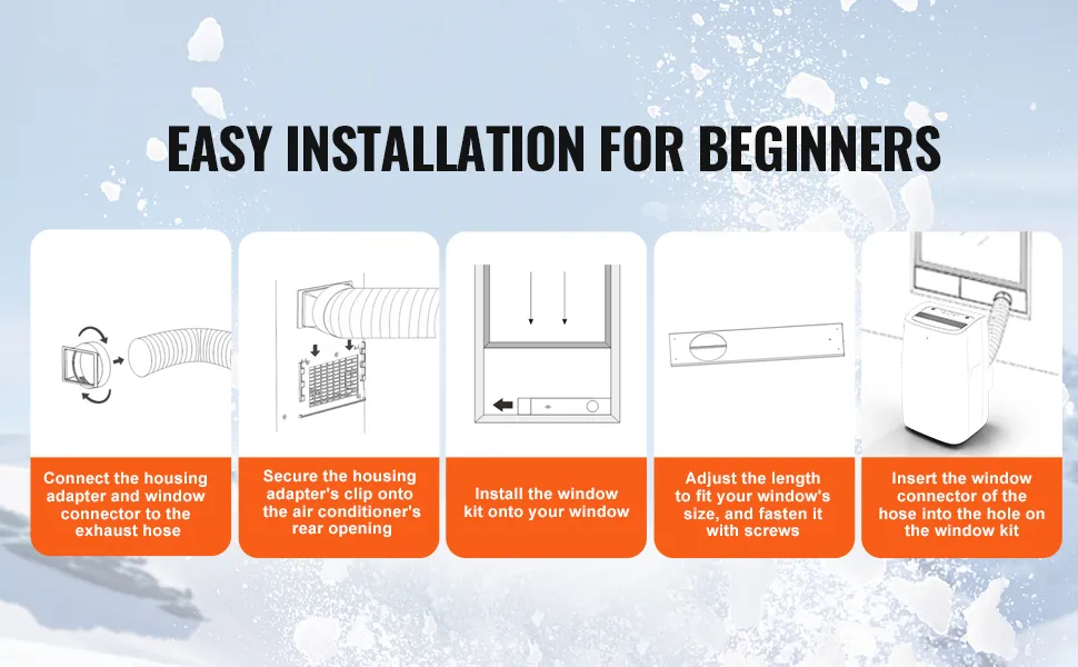 The extensive installation kit allows you to get up and running with little effort. The package includes a window assembly that works with sliding or movable windows, an exhaust hose, and a drainage hose. Additional flexibility is offered by two installation options: either follow the detailed instructions for a more permanent installation, or utilize a temporary setup by positioning the drainage pipe beyond the window sill.
