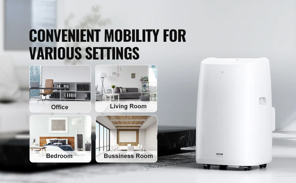 In mild weather when cooling isn’t required, the adjustable fan setting circulates air to keep rooms fresh without excessive cold. The compact design with four rolling wheels lets you position it wherever comfort is needed. You can use it in the bedroom during summer nights in a sunroom or home office when humidity rises. Because it’s easy to move and set up, you can enjoy year‑round climate control without investing in separate appliances, making this versatile unit a smart addition to any home or workspace.