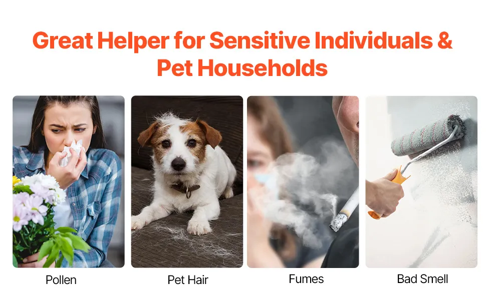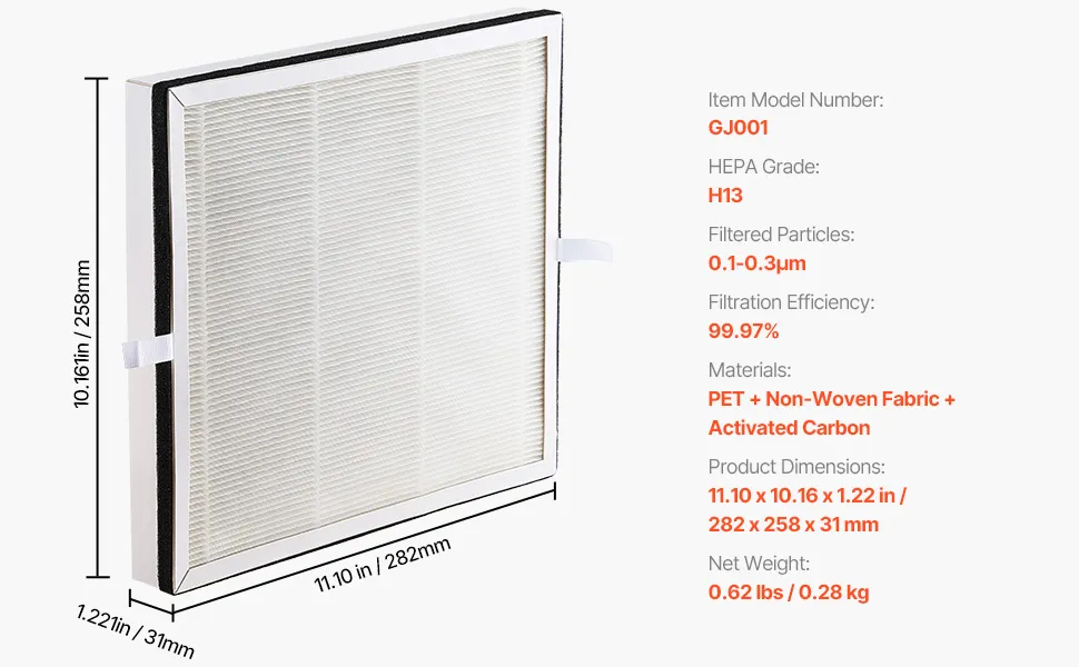 Replacement Filter for Home Air Purifiers: The H13-grade filter effectively captures particles between 0.1–0.3 microns, removing 99.97% of dust, pollen, and allergens. It’s particularly suitable for air-sensitive individuals, such as the elderly, infants, and pet owners, ensuring a clean and fresh breathing experience at home.