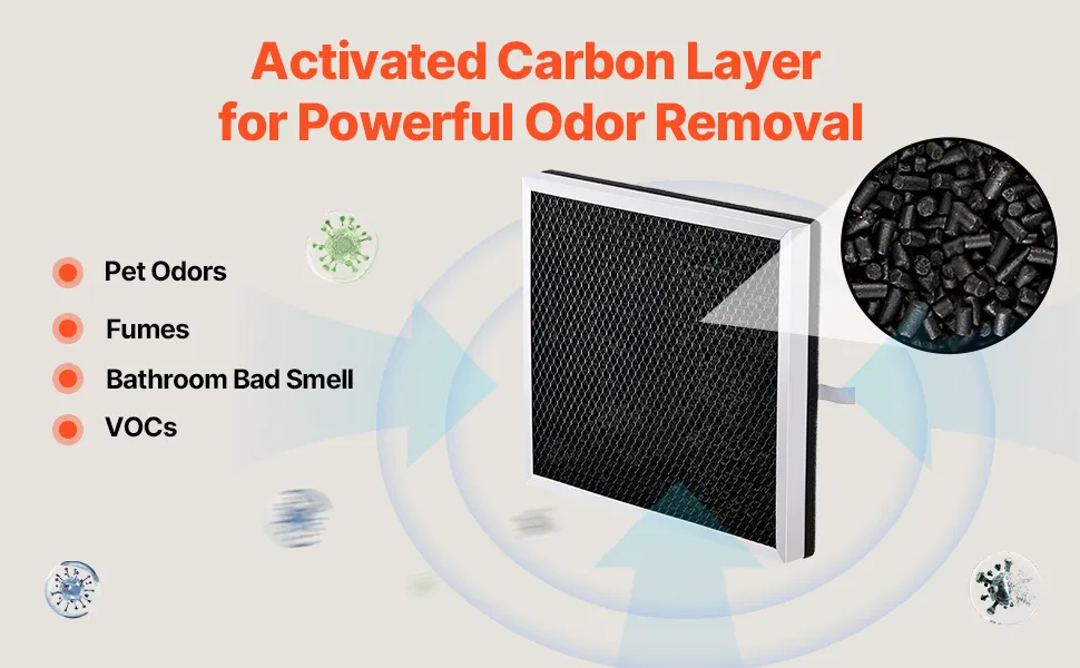 Versatile for Multiple Environments: The activated carbon filter features a unique honeycomb structure that increases the adsorption area, allowing it to effectively capture pet odors, smoke, and household chemical fumes. It is ideal for home. Whether in the bedroom, living room, nursery, or office, it efficiently purifies the air, creating a healthy and fresh living environment.