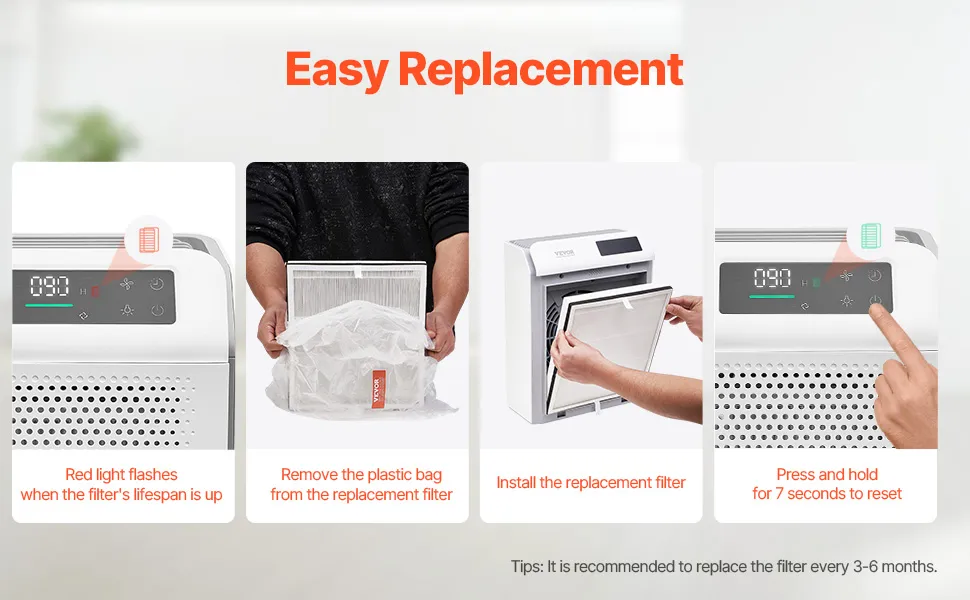 Easy to Clean and Long-Lasting: The durable PP material of the initial-stage filter can be removed to clean off surface dust and hair, ensuring cleanliness without secondary pollution and maintaining high air quality in your home. Note: The filter is not washable.