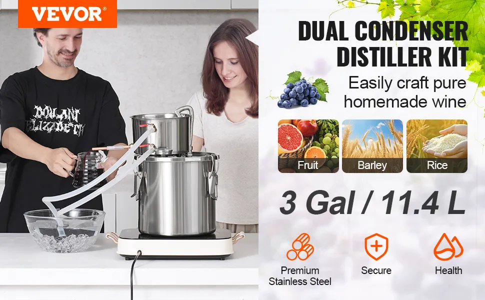 Sincerity and craftsmanship shine through! This distillation unit is perfect for beginners to brew and produce fruit wines, rum, vodka, distilled water, essential oils, and other distilled products at home.