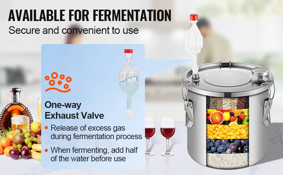 Secure Sealing: Silicone leak-proof plug is added at the corrugated pipe joints to prevent leaks of water vapor, reducing the risk of burns and other injuries. Use a wrench to securely tighten connections during assembly. The fermentation barrel lid features four fixed sealing latches with built-in seals, ensuring hygiene and optimal fermentation results.