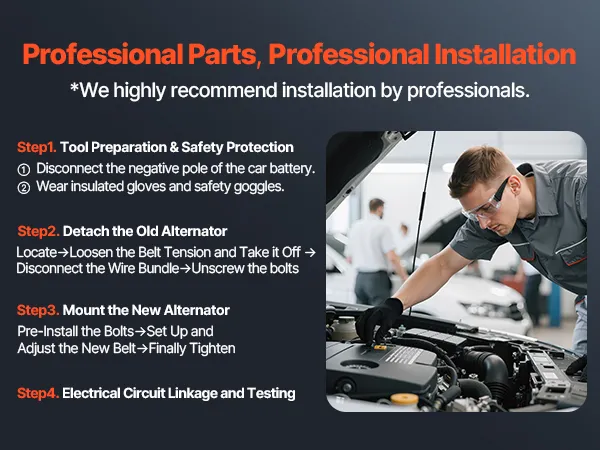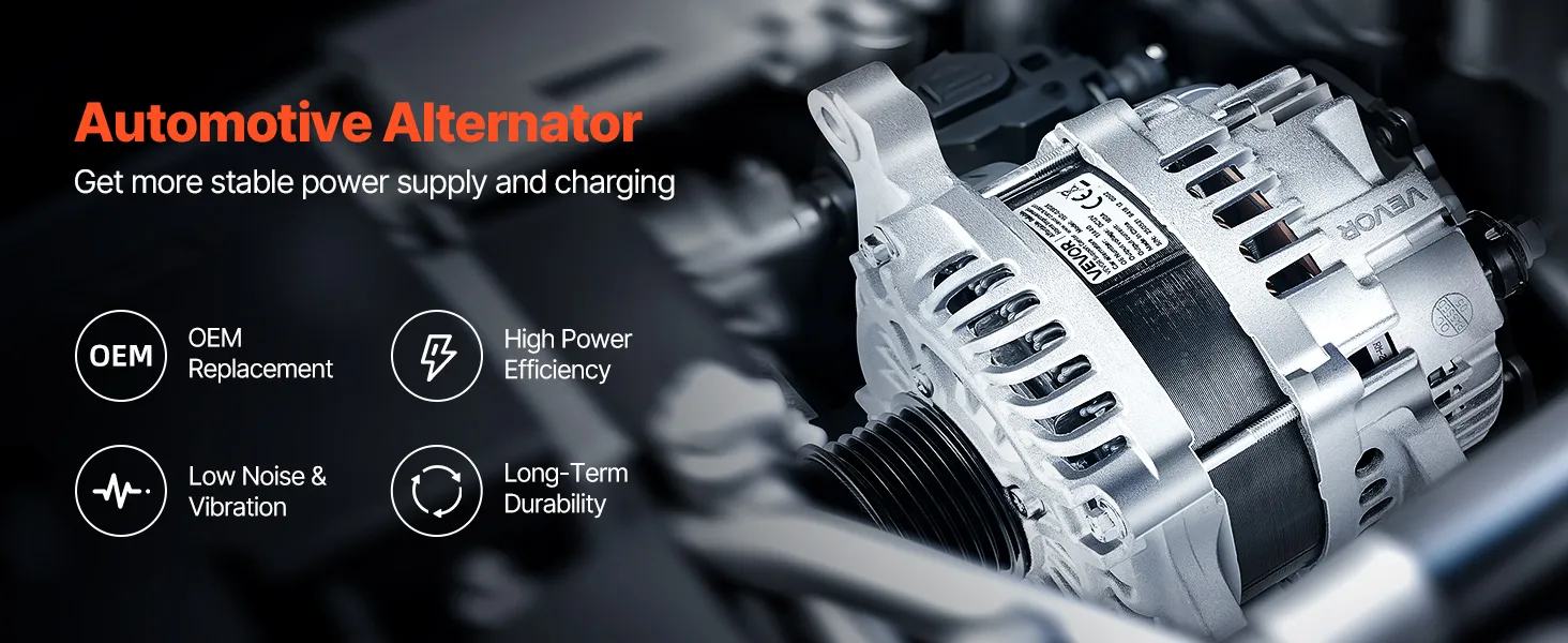 Durable Materials: Our automotive replacement alternator is built with high-temp-resistant copper coils and a lightweight aluminum housing with cooling fan. This combo improves heat dissipation and conductivity while withstanding tough conditions