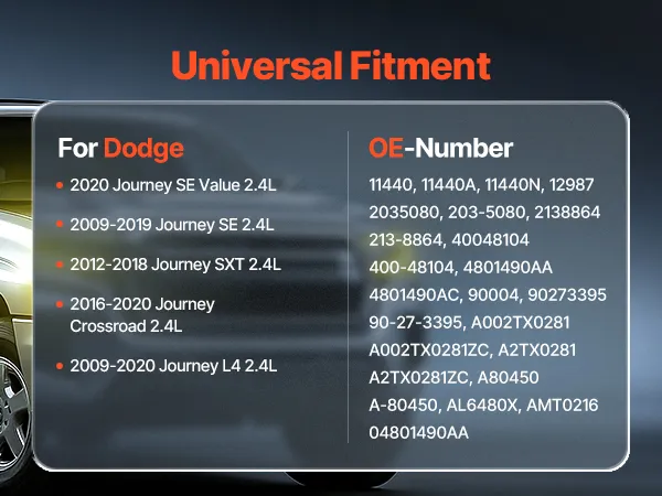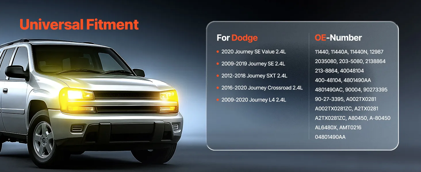 Vehicle Compatibility: Our alternator works great on Dodge Journey SUVs. It fits 2020 Journey SE Value 2.4L, 2009-2019 Journey SE 2.4L, 2012-2018 Journey SXT 2.4L, 2016-2020 Journey Crossroad 2.4L, and 2009-2020 Journey L4 2.4L
