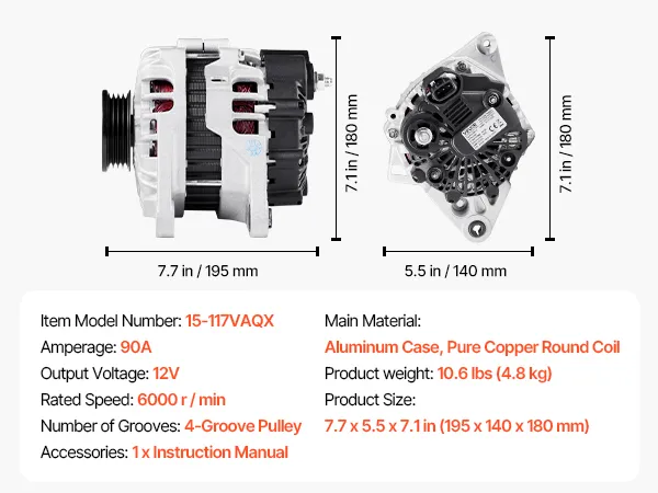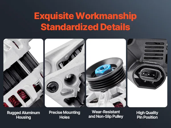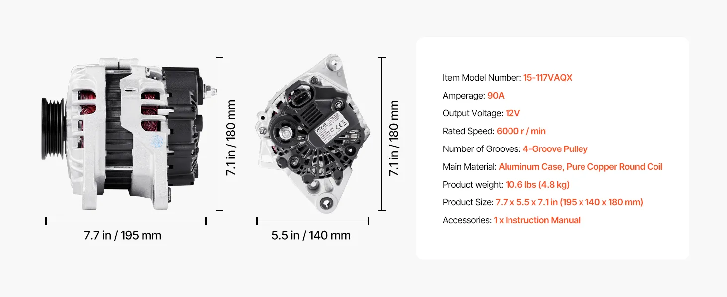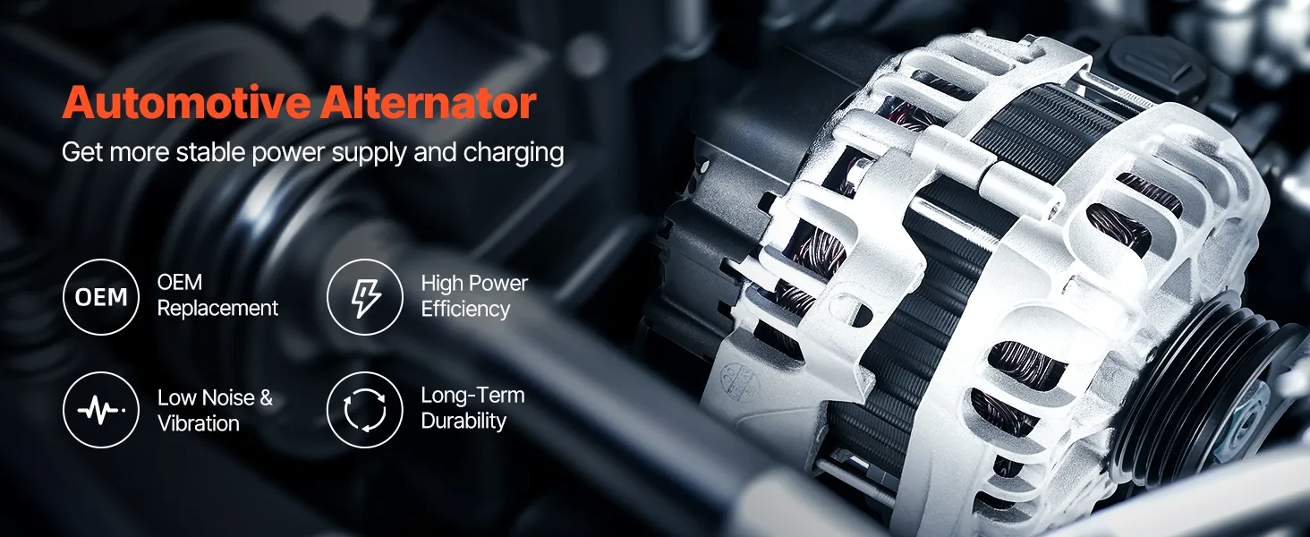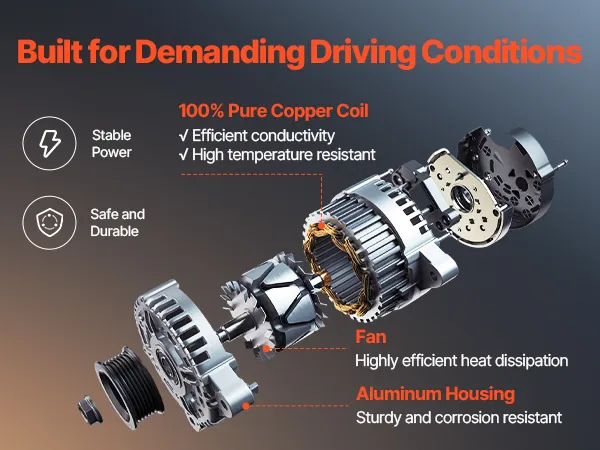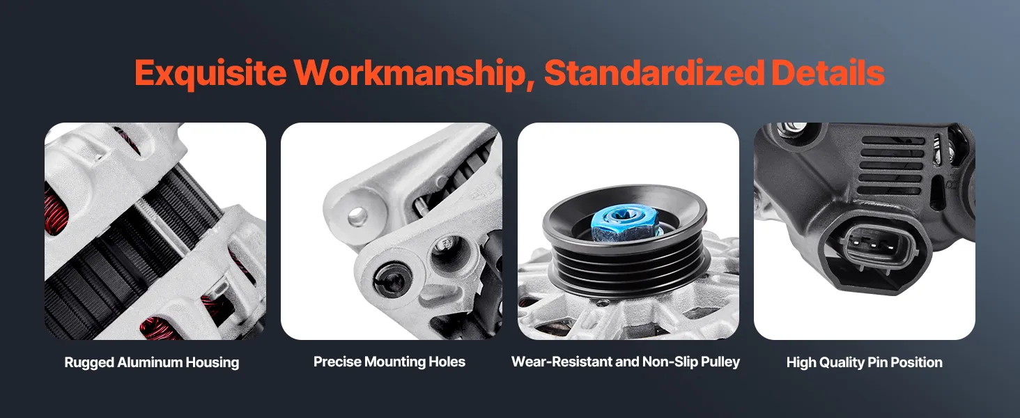 Our alternator replacement features pure copper coils for better durability than aluminum. The aluminum housing and cooling fan boost heat dissipation. It delivers a stable 130A output to support high-load devices like AC and premium sound systems.