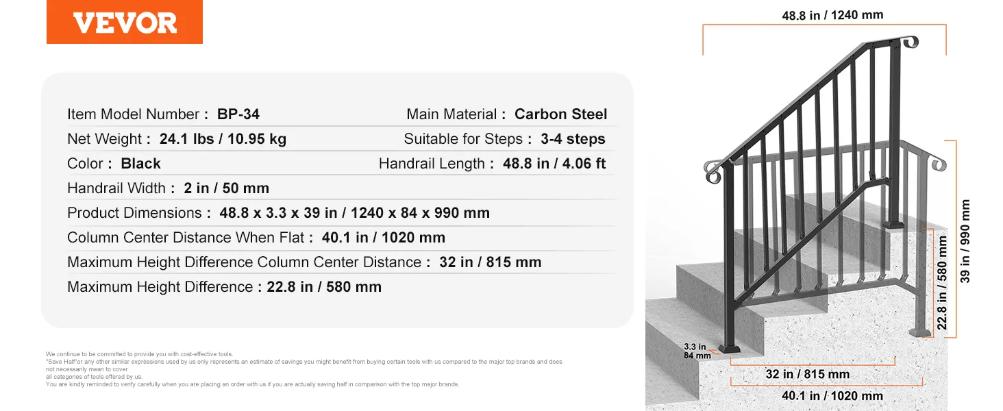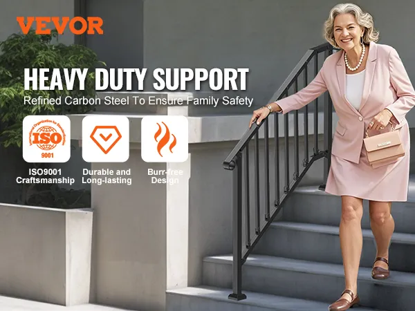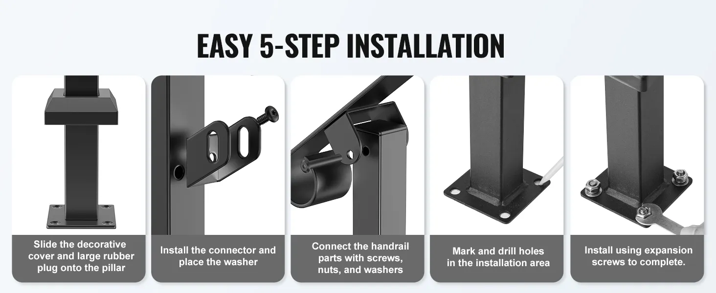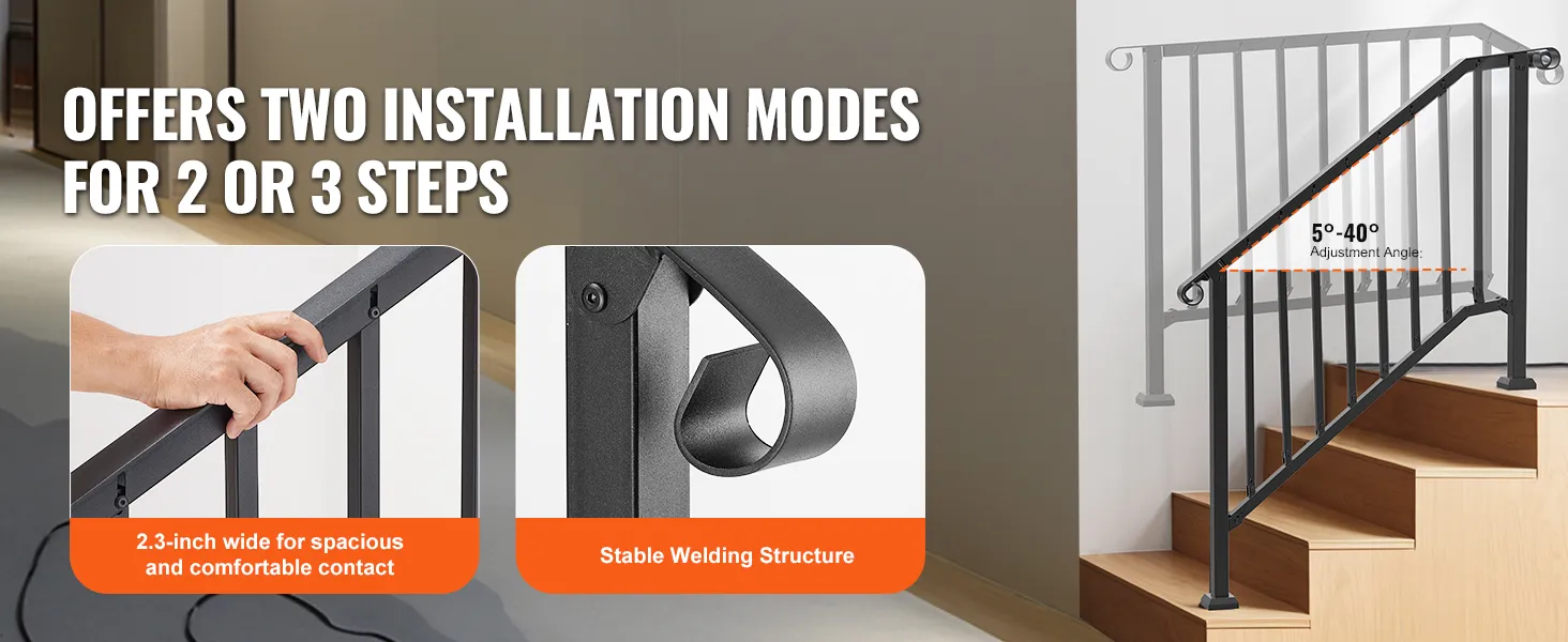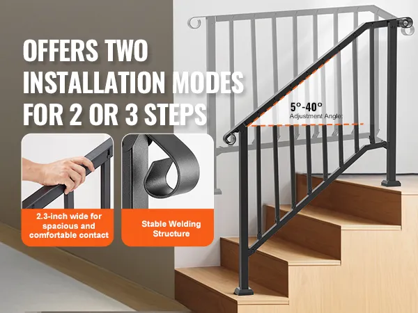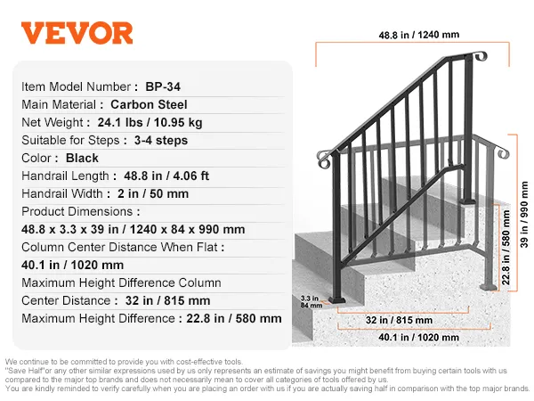 VEVOR Handrails for Outdoor Steps, 3-4 Step Stair Hand Rail Kit, Transitional Ir