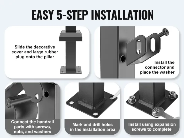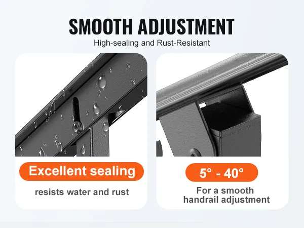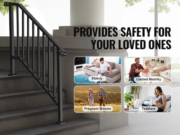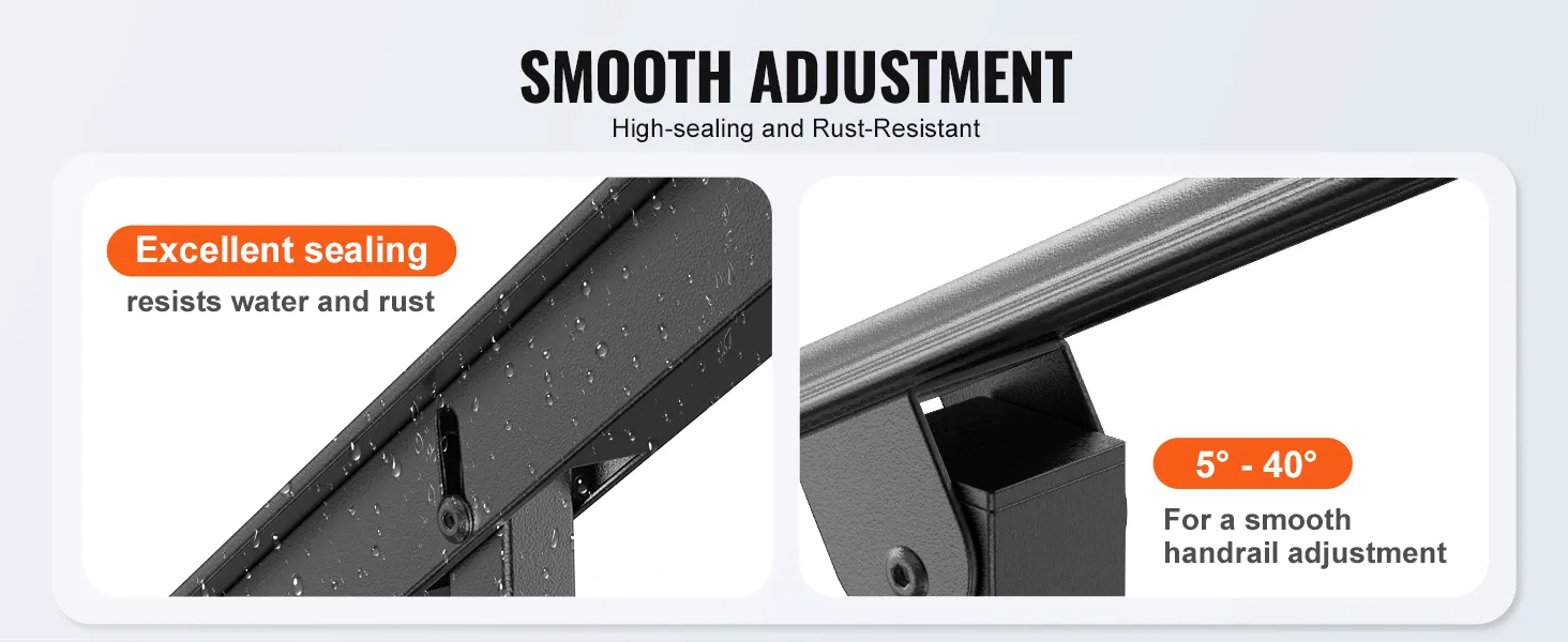 This adjustable handrail is suitable for 4-5 step levels, accommodating various applications such as doorsteps, garage entrances, and garden railings. Its versatile design ensures a perfect fit.
