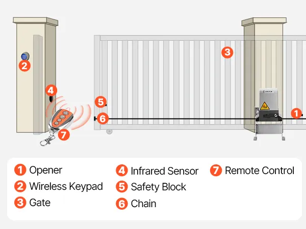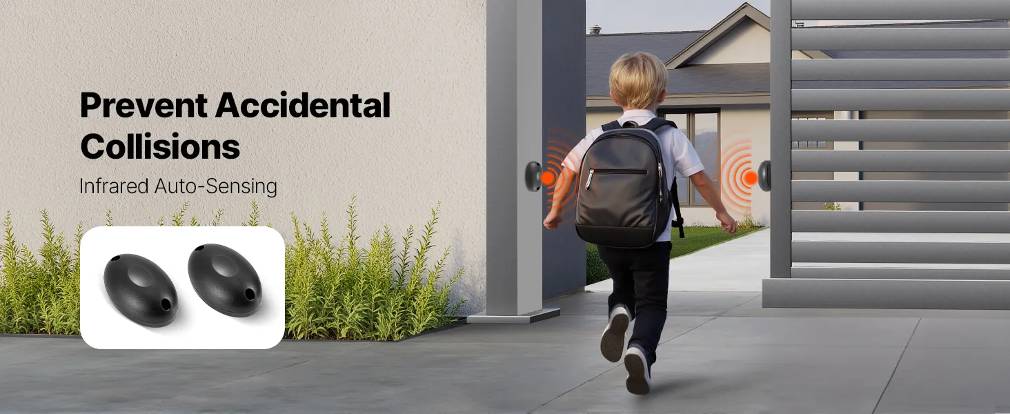 The VEVOR gate opener features an infrared sensor that enhances protection during everyday gate use. It works by creating an invisible safety beam between two points near the gate. It sends a signal to the gate opener to stop, move, and reverse direction. The motorized gate opener for homes stops the gate whenever it detects a vehicle. It also ensures that the gate moves only when the path is clear.