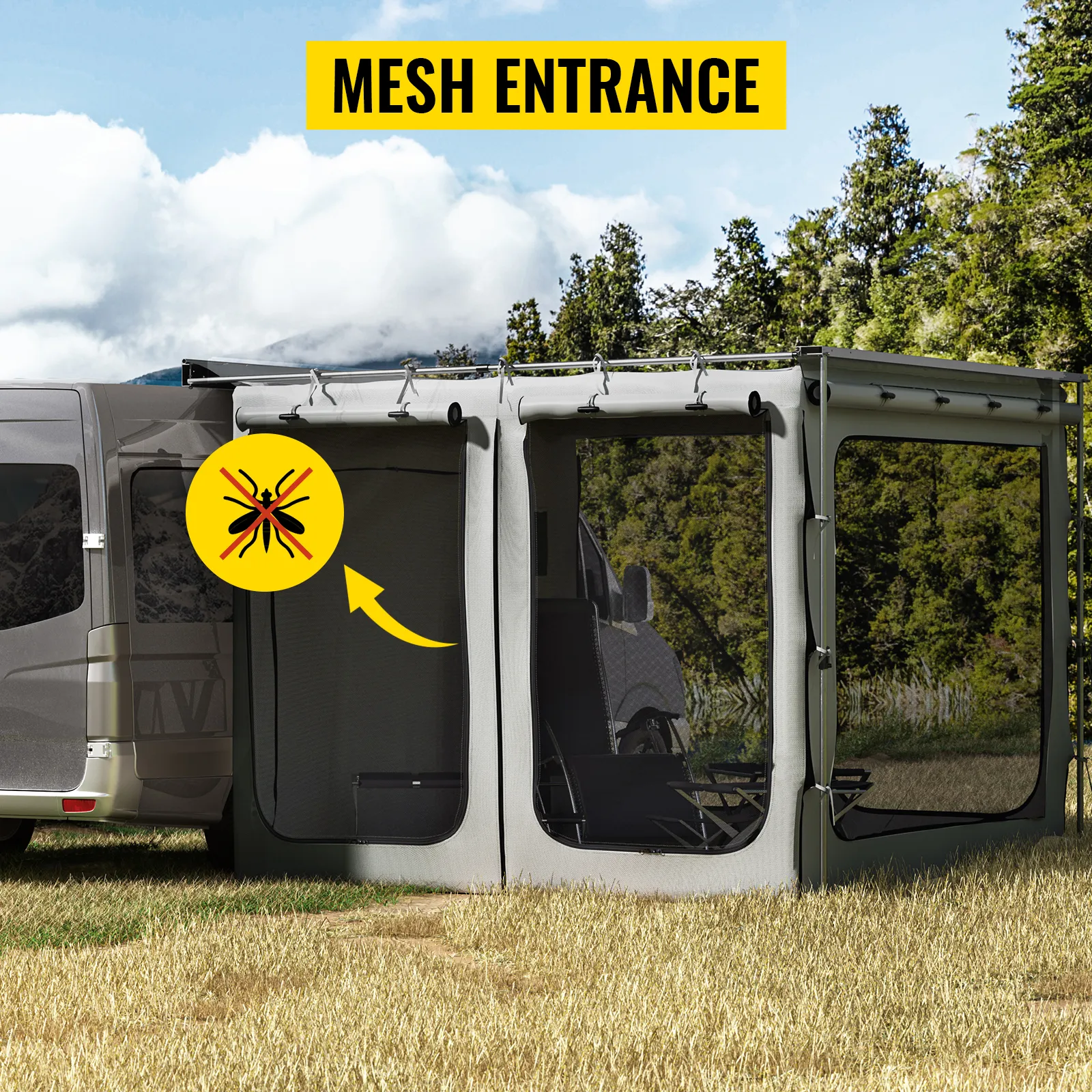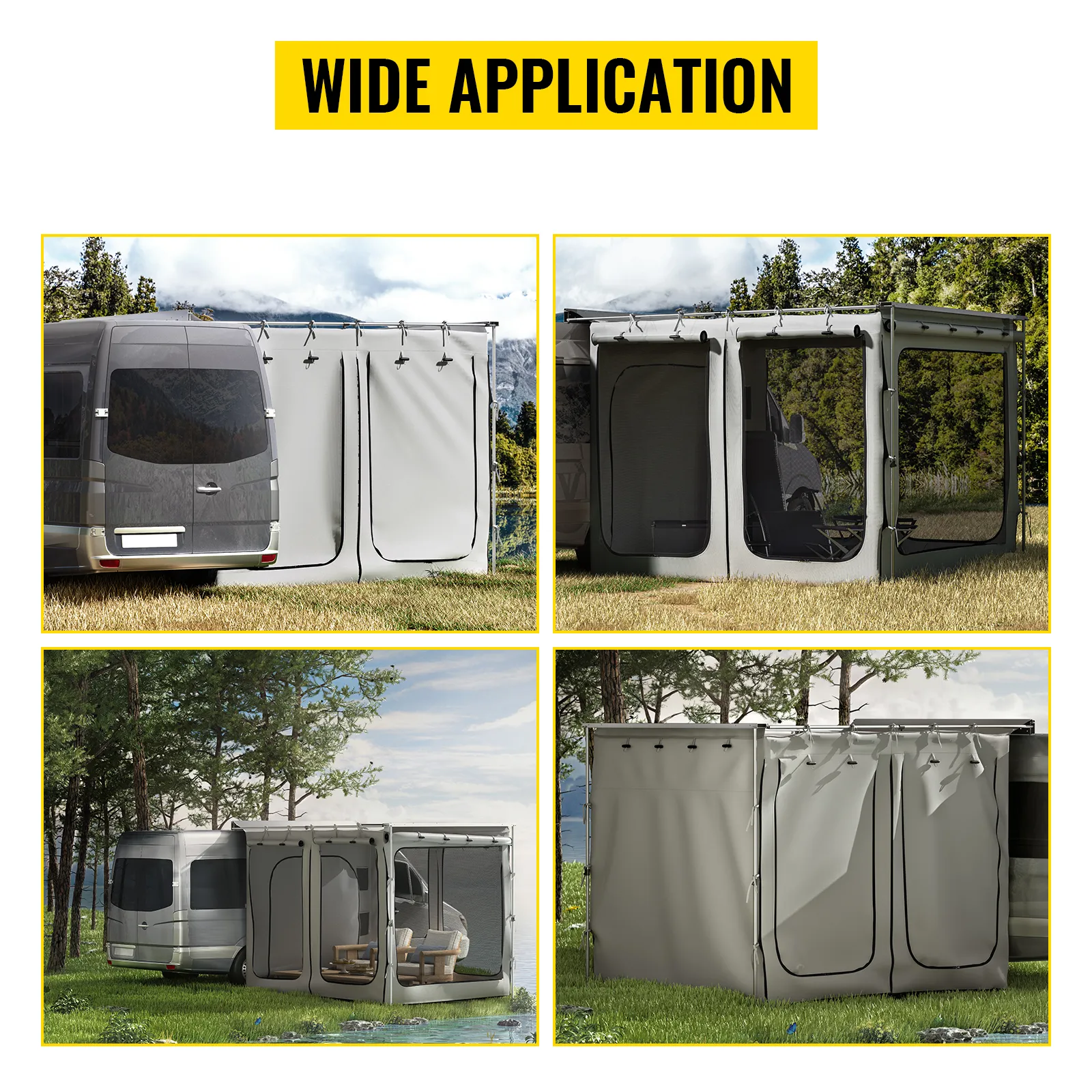 The VEVOR Awning Room with Floor provides weather protection and more privacy for your car and rest area. It is designed around the needs of everyone, fitting the interest of a recreational 4x4 owner to an adventurer embarking on an overland expedition; it can be used as an outdoor temporary storage/change room. Get a break from the sun on hot days or relax with friends and family on your trip!