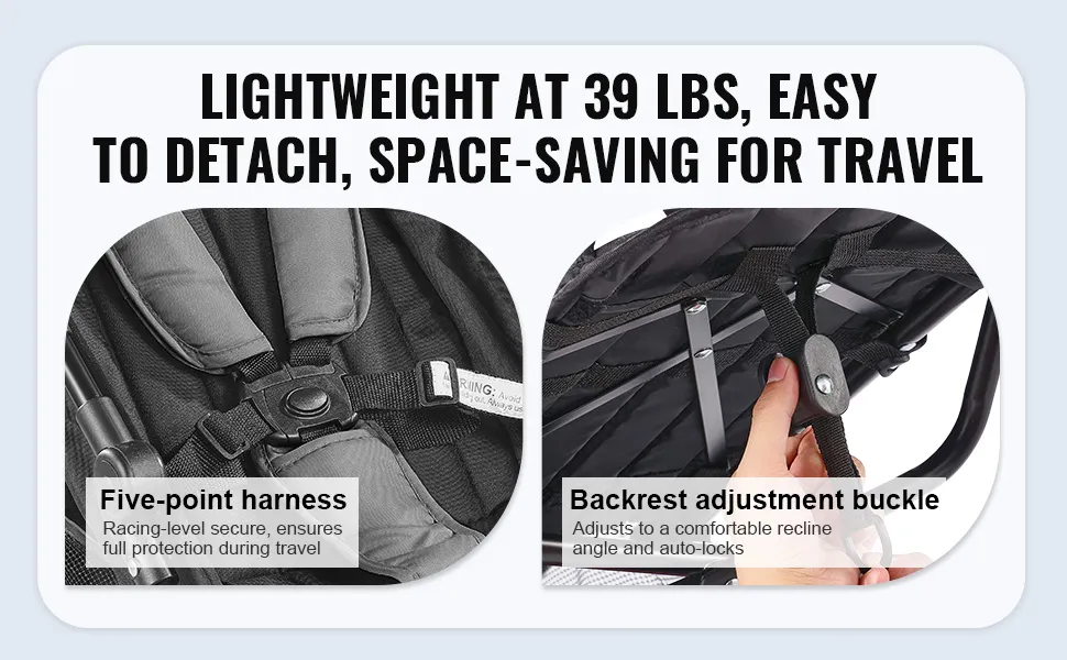 Adjustable Backrest: The stroller features an adjustable backrest with a range of 95-145°, offering multiple modes: upright, reclined, and flat. This adjustment caters to your baby's needs for observation, rest, or sleep and meets ASTM standards.