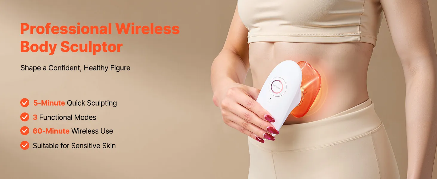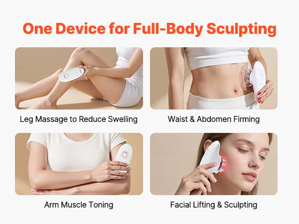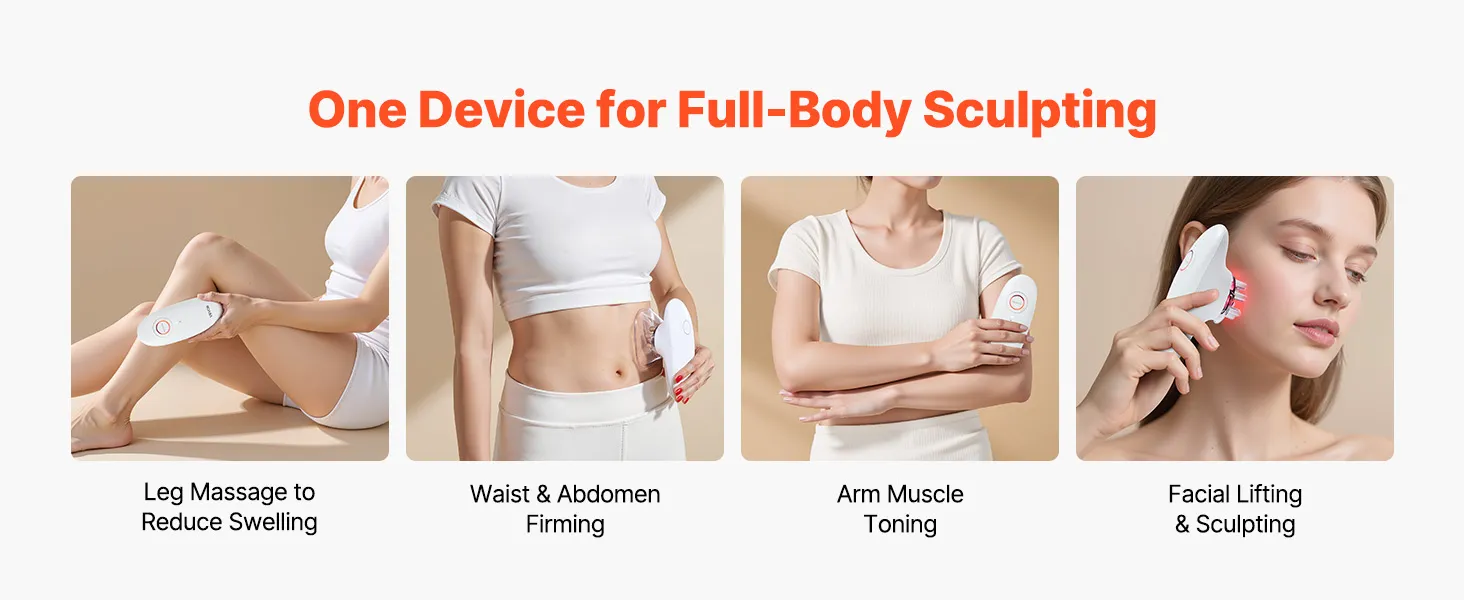 Full-Body Sculpting: Our body sculptor has three modes: Body mode targets torso and limbs for smooth lines, face mode gently lifts facial contours, and lipo mode focuses on stubborn fat areas. Suitable for thighs, abdomen, arms, legs, and hips