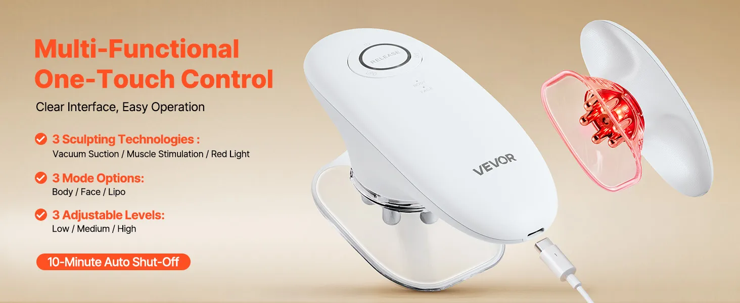 3-in-1 Sculpting Design: The red-light electric cellulite machine combines vacuum suction, EMS muscle stimulation, and red light therapy. Vacuum enhances circulation and metabolism, EMS firms and tones muscles, while red light promotes collagen production