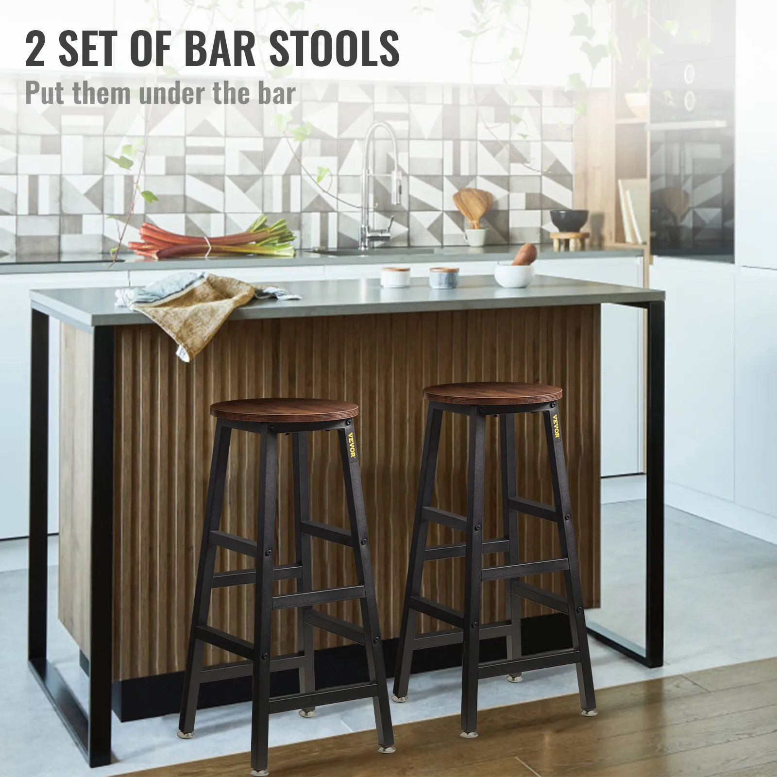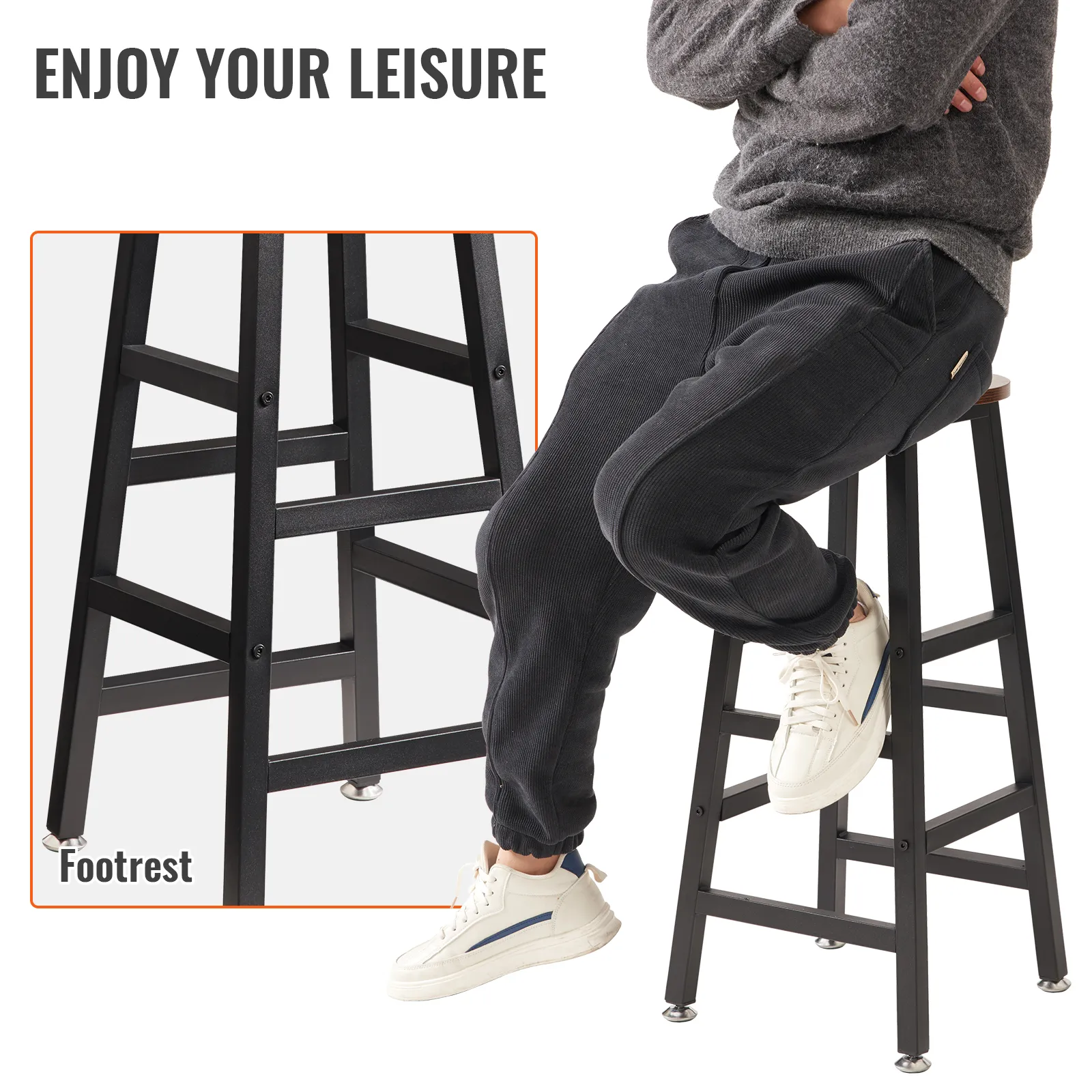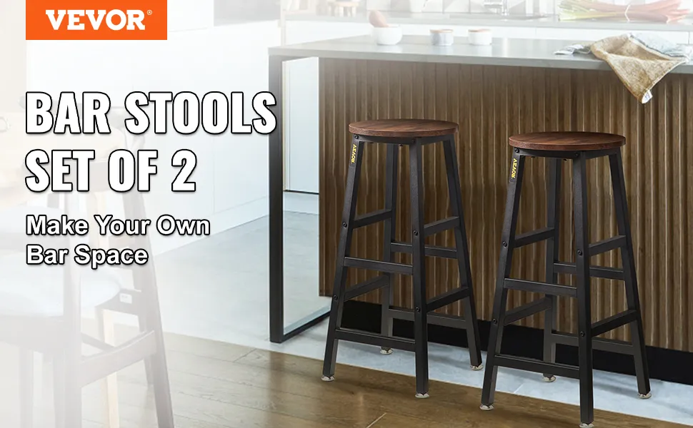 If you are looking for durable and compact bar stools for your place, then you are in luck! We got what you need! Each stool is composed of a firmly-welded steel frame, thickened MDF board, and tightly connected footrest. Its sleek rustic wood and black colors add a classic touch to any setting. It can be used at home, in bars, restaurants, and other commercial establishments. Create the perfect aesthetic and set the mood right with VEVOR!