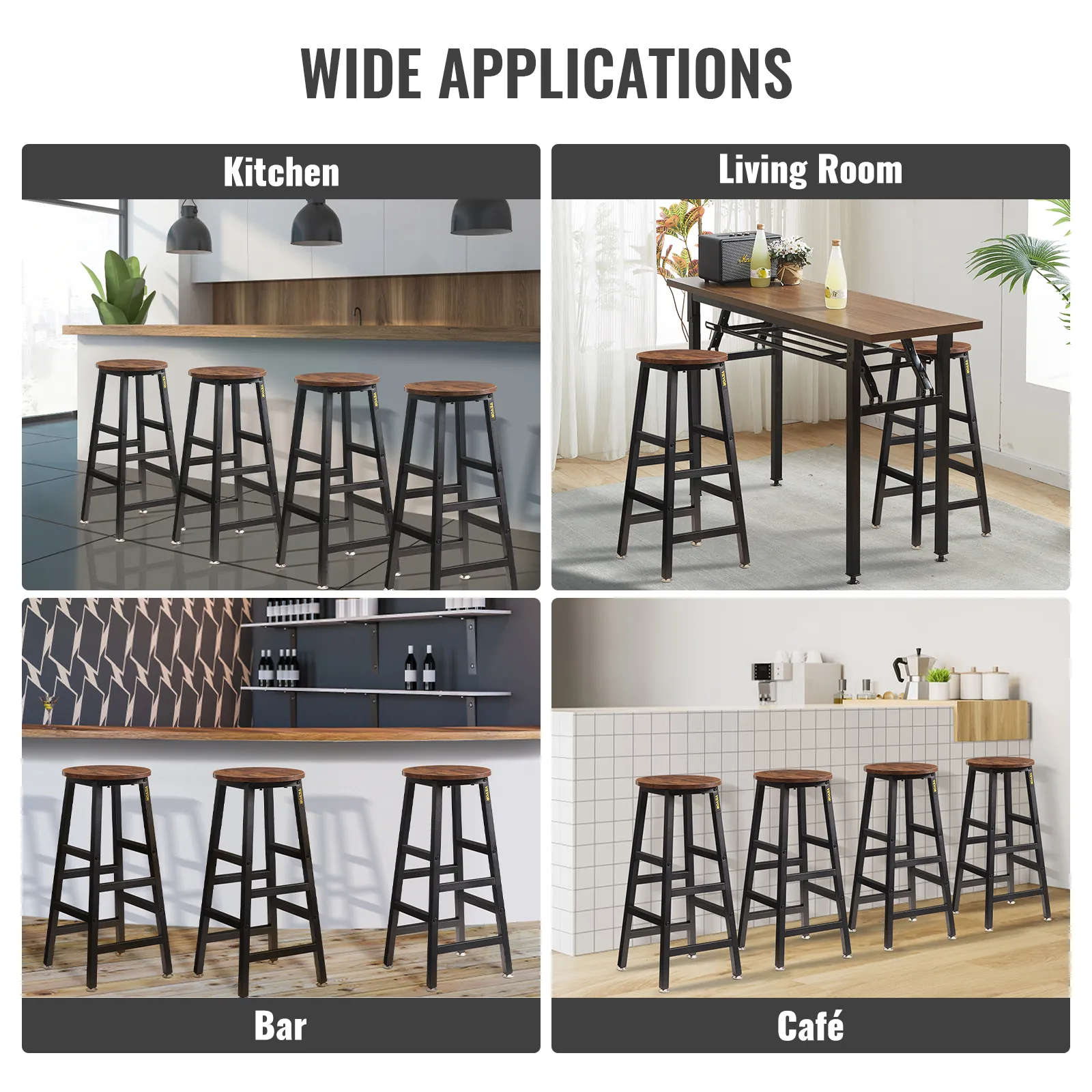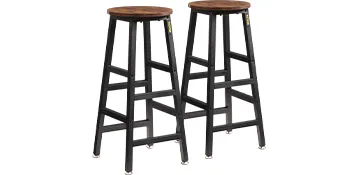 Each bar stool is composed of an 11.8" / 30 cm wide x 0.6" / 1.5 cm thick wooden seat and firmly welded steel pipes, holding up to 265 lbs / 120 kg of weight. The stable structure allows you to use it with confidence.