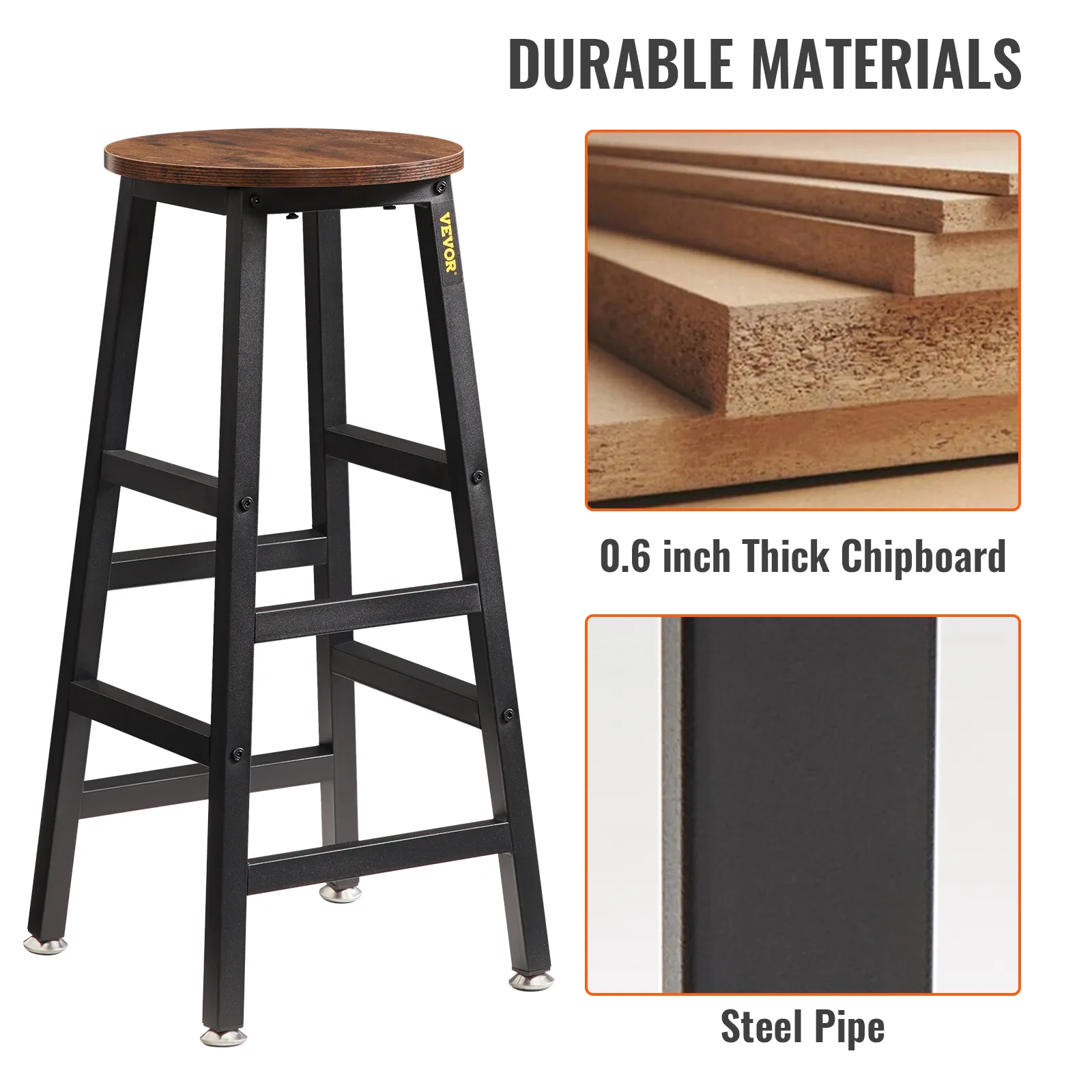 These rustic bar stools are ready to withstand daily, heavy-duty use. Constructed of high-quality steel and MDF board, they feature an industrial look and ensure stability and long-lasting use.