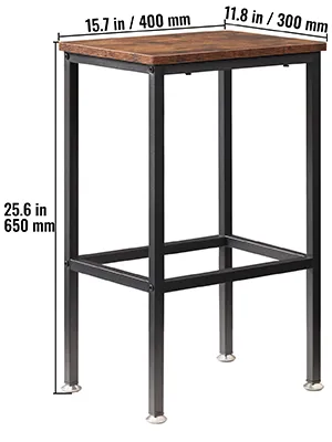 Each bar stool is composed of a 15.7" x 11.8" x 0.6" / 40 x 30 x 1.5 cm wooden seat and firmly welded steel pipes, holding up to 265 lbs / 120 kg of weight. The stable structure allows you to use it with confidence.