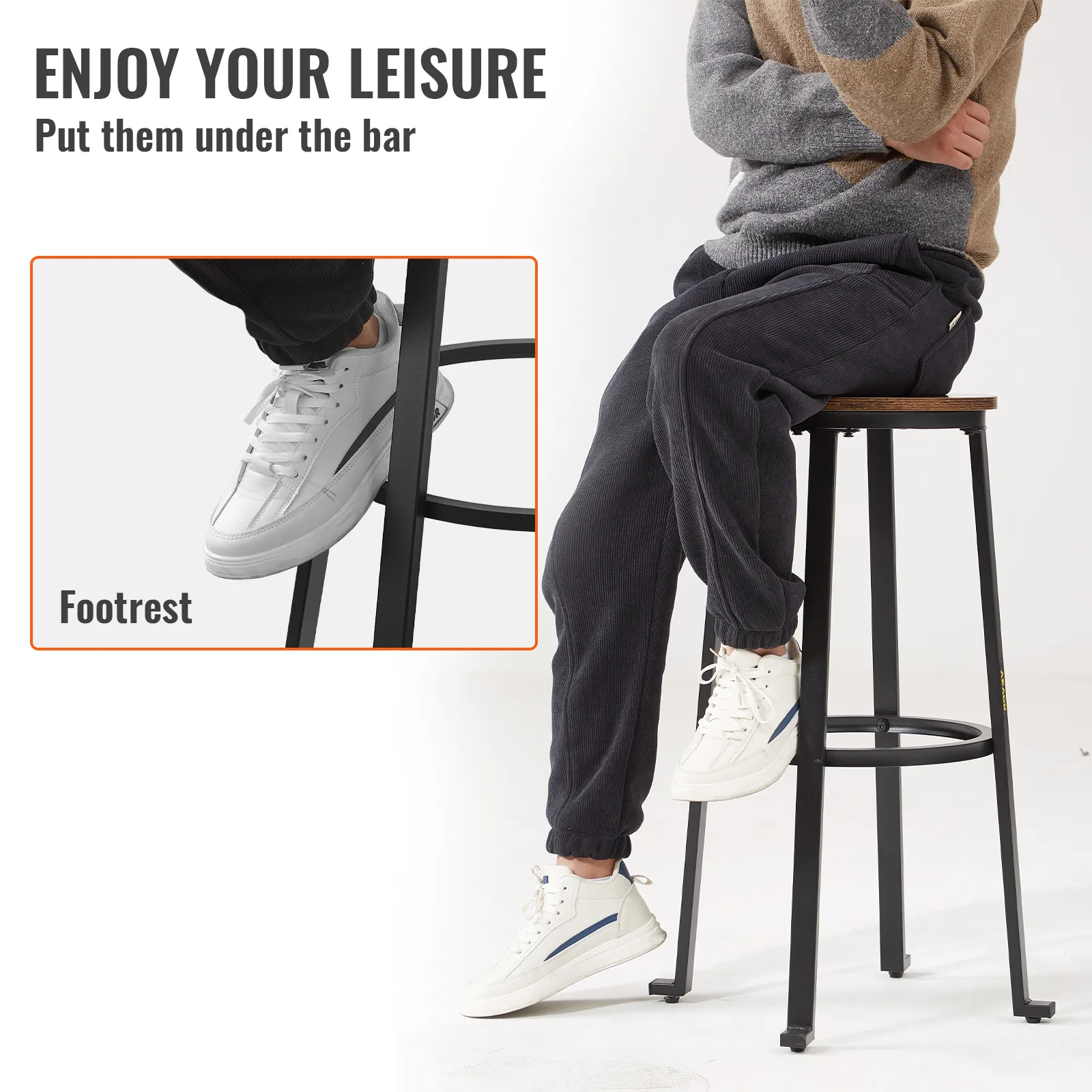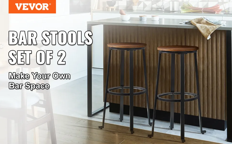 If you are looking for durable and compact bar stools for your place, then you are in luck! We got what you need! Each stool is composed of a firmly-welded steel frame, thickened MDF board, and tightly connected footrest. Its sleek rustic wood and black colors add a classic touch to any setting. It can be used at home, in bars, restaurants, and other commercial establishments. Create the perfect aesthetic and set the mood right with VEVOR!