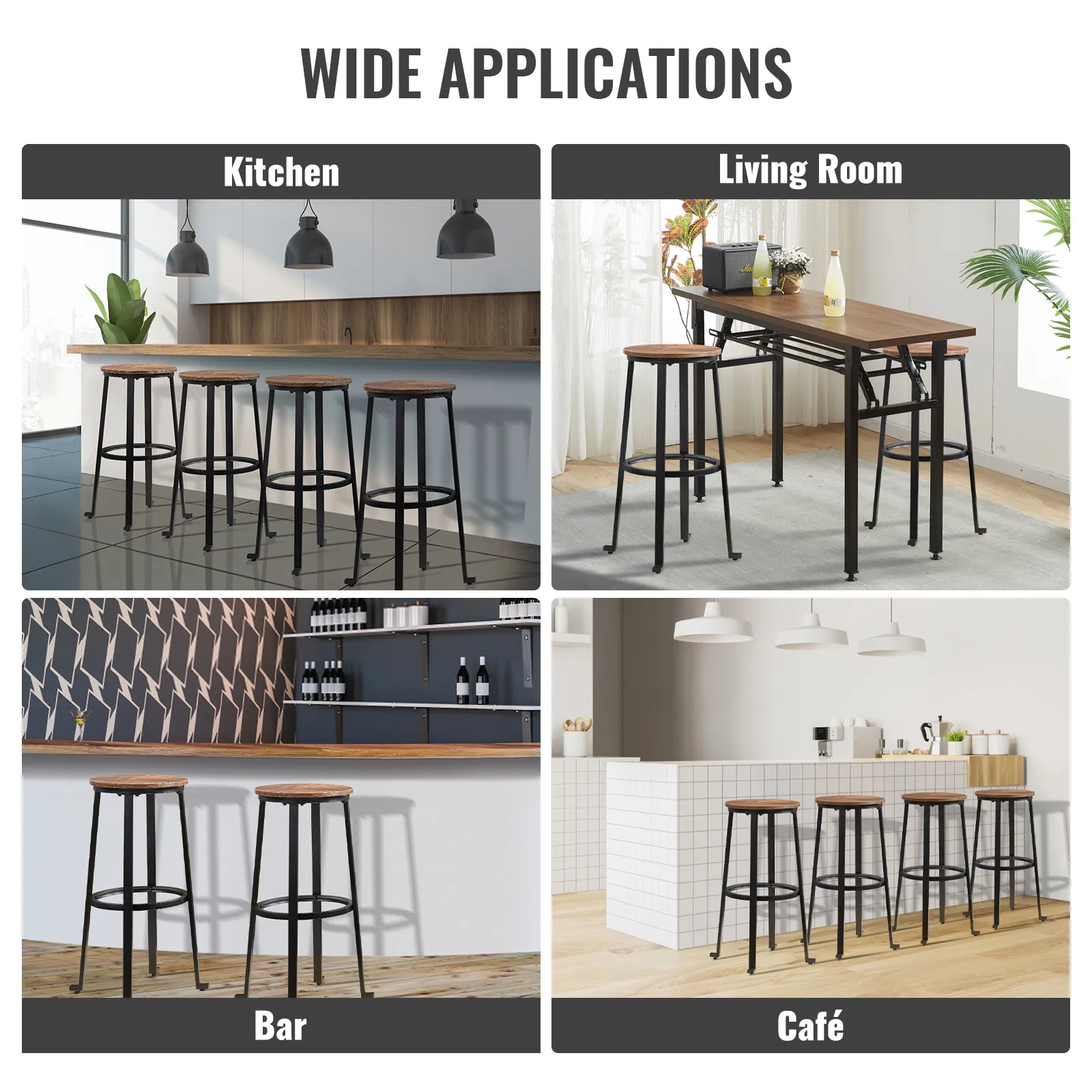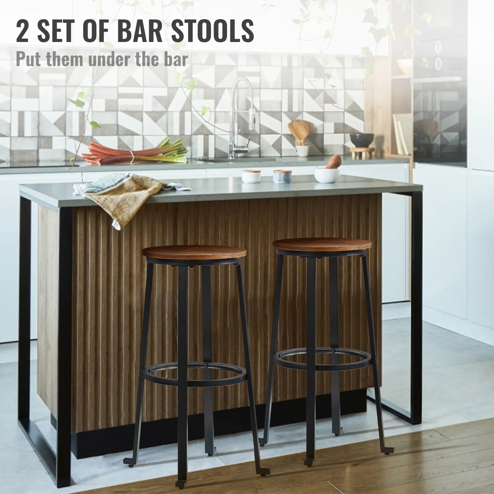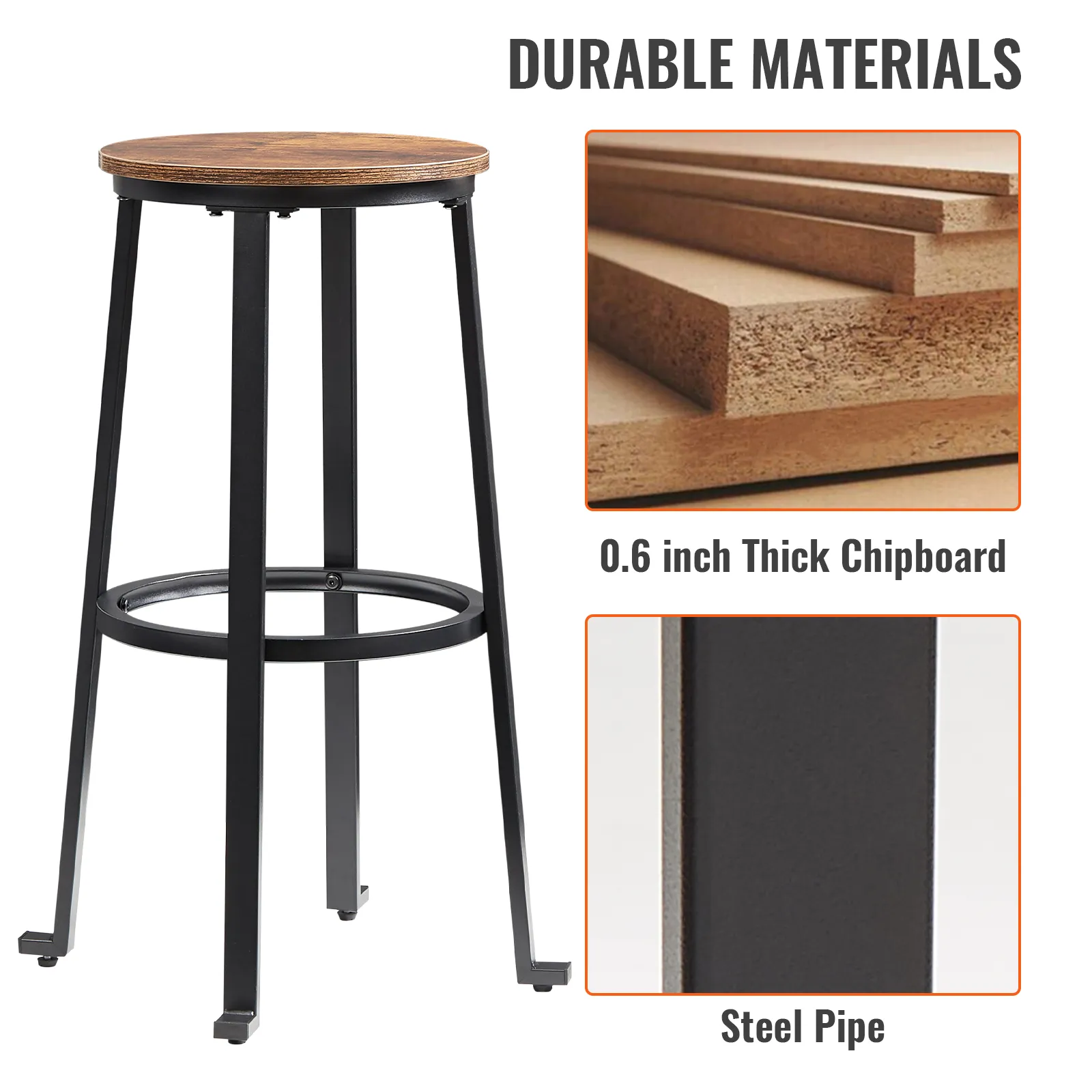 These rustic bar stools are ready to withstand daily, heavy-duty use. Constructed of high-quality steel and MDF board, they feature an industrial look and ensure stability and long-lasting use.