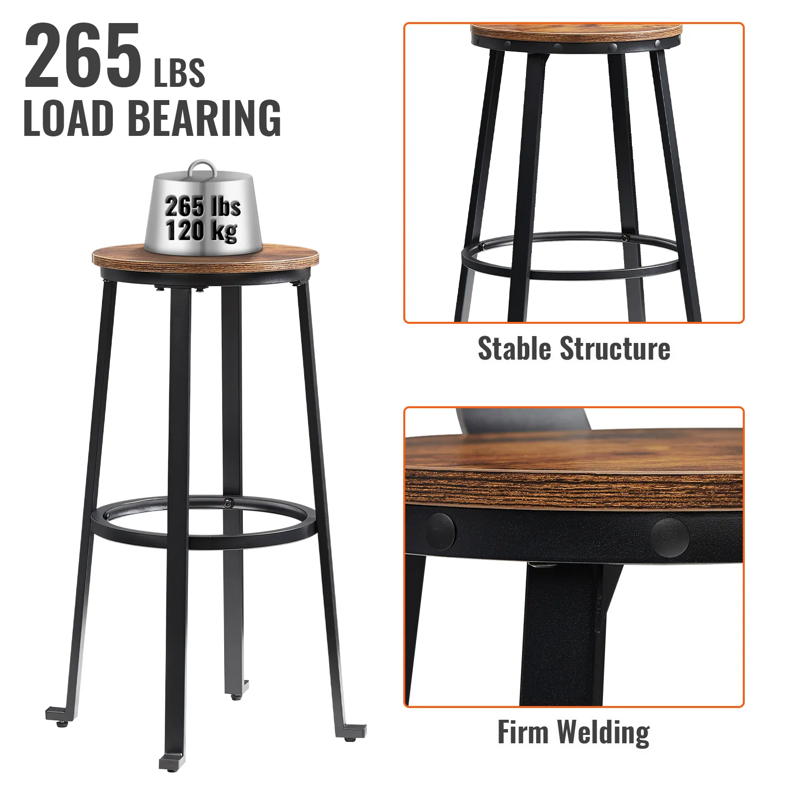 Each set includes two 29.1" / 74 cm tall bar stools, which can ideally be stored under the 39" to 42" high tables when not in use, maximizing space while maintaining tidiness and aesthetics.