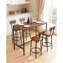VEVOR Bar Table, 5PCS 47″ Bars Tables Set, Bar Tables and Chair Set with Rounded Edge Design, Rectangular Pub Table with Four Stools for Living Room, Dining Room, Kitchen, Walnut Color, Black