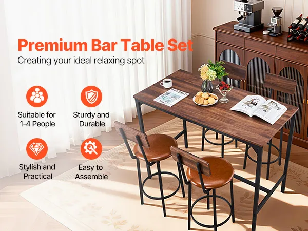 Stylish & Easy to Clean: Our bar table and chair set can be easily cleaned with a damp cloth, staying new for a long time. Its classic color scheme and design fit into various home styles, including Nordic, industrial, and modern minimalist