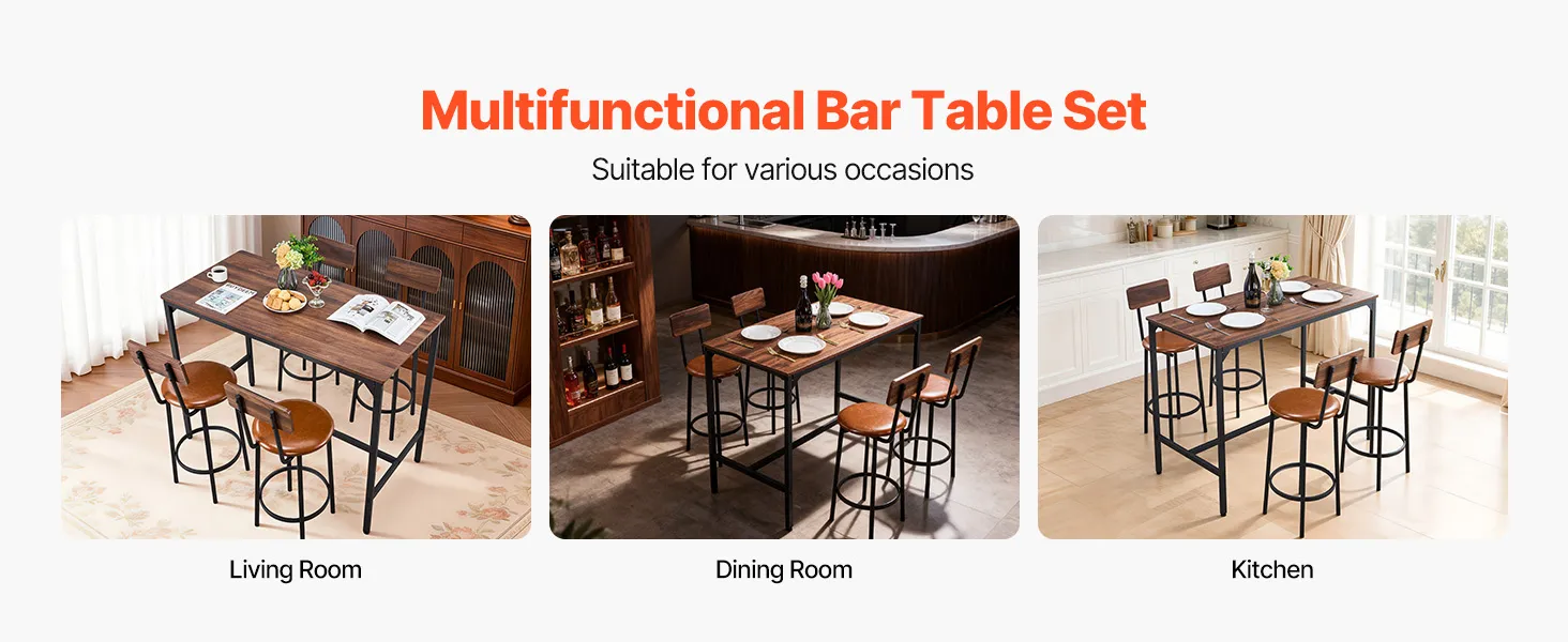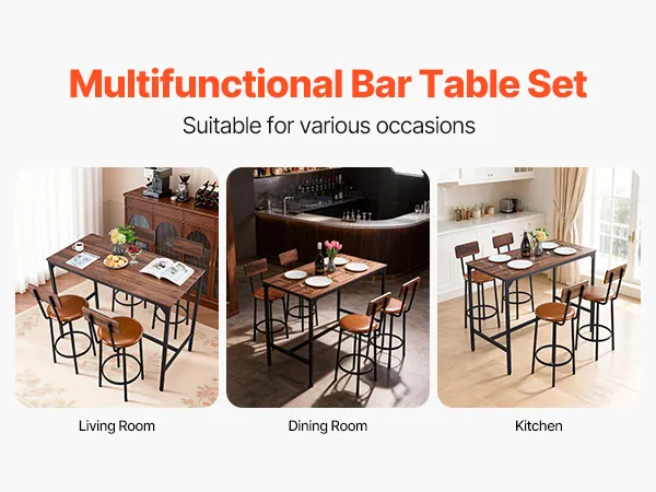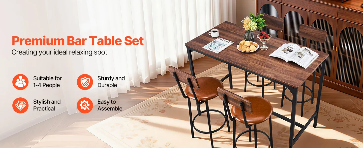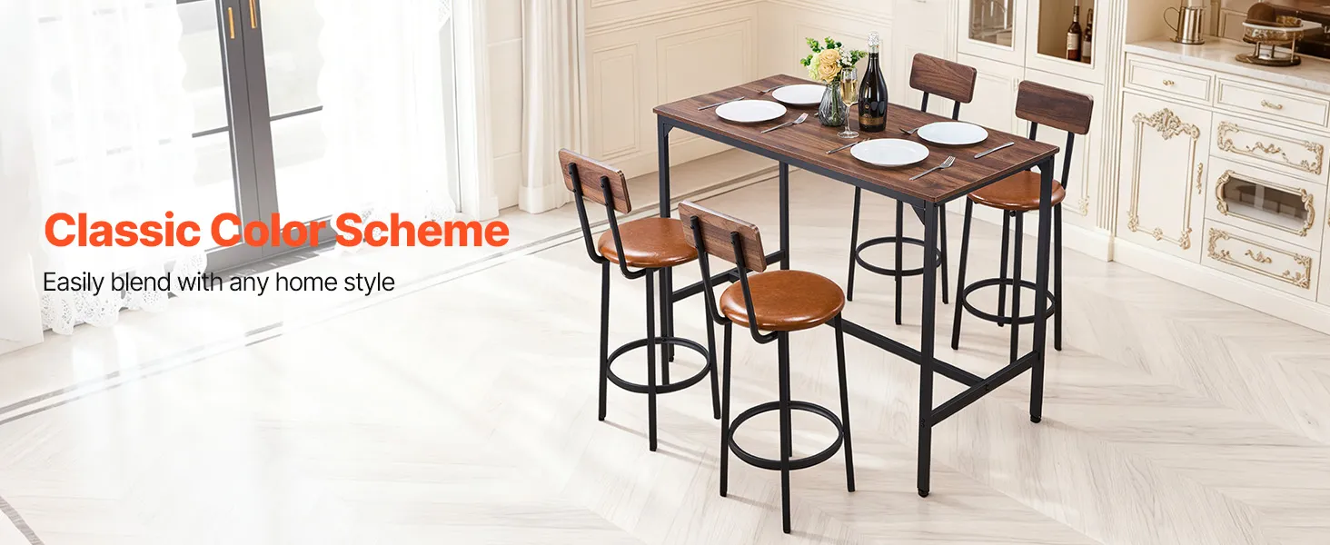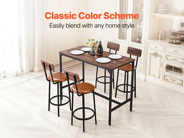 Space-Saving Design: All chairs can be easily pushed under the table for seamless storage. Visually tidy and sleek, our counter height kitchen table with bar stool provides an ideal dining solution for compact settings