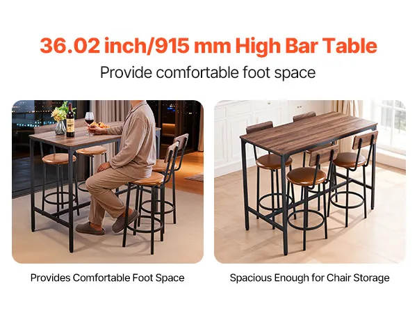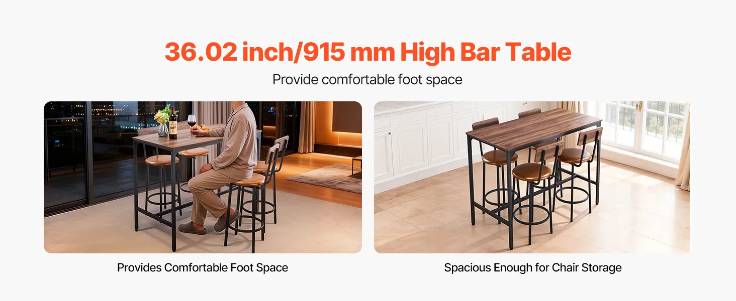 Measuring 36.02 inches/915 mm in height, this counter height kitchen table with bar stool is designed for practicality. Its height provides comfortable, unobstructed legroom, while the ample space underneath allows chairs to be neatly stored, keeping your area tidy and organized.