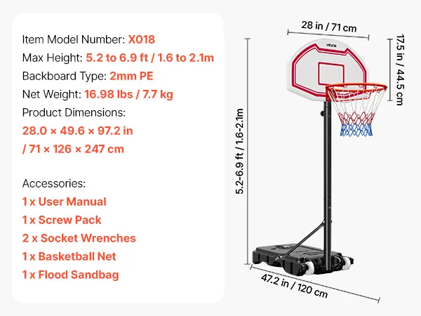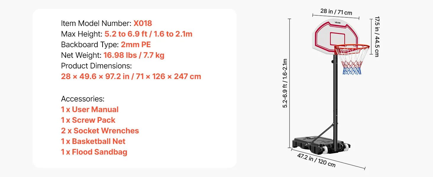 Weather-Ready: Designed for home and casual games, this kids adjustable basketball hoop has a 28-inch/711.2mm PE backboard, 0.08 inch/2.0mm thick, delivering precise rebounds and clear visibility. The premium woven net withstands wind, rain, and frequent use without fading or tearing