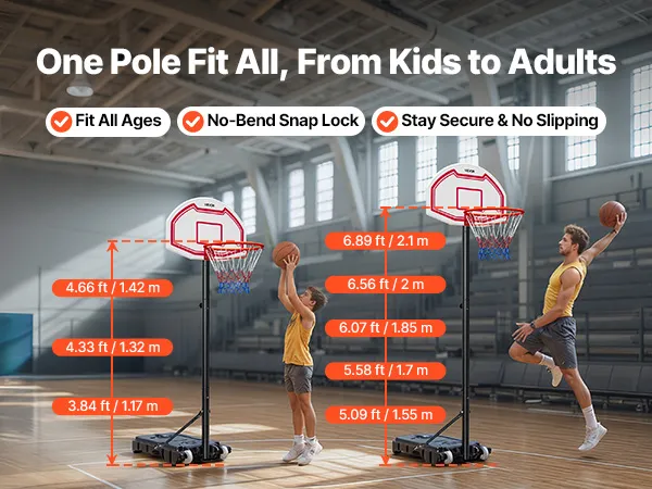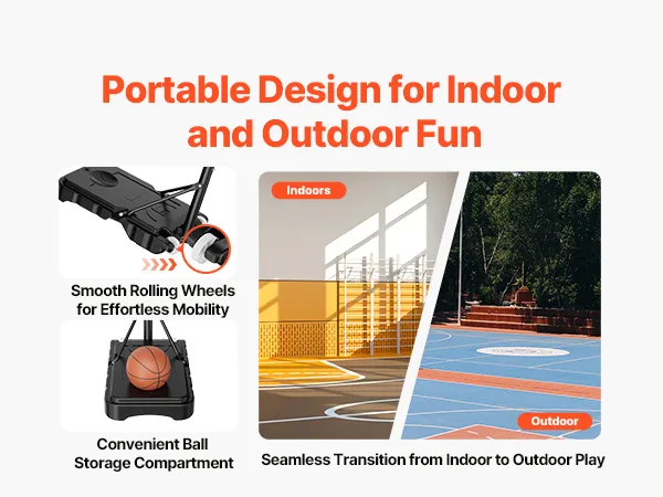 Adjustable Height: This basket ball hoop for outdoor features a screw-based height design, adjustable from 5.2 to 6.9 ft/1.6 to 2.1m. Quick 3-second indoor/outdoor switching lets players of all ages and skill levels train efficiently without complicated steps, keeping practice smooth and enjoyable