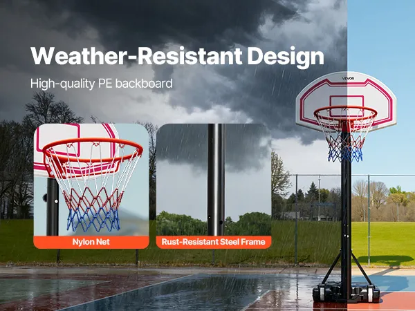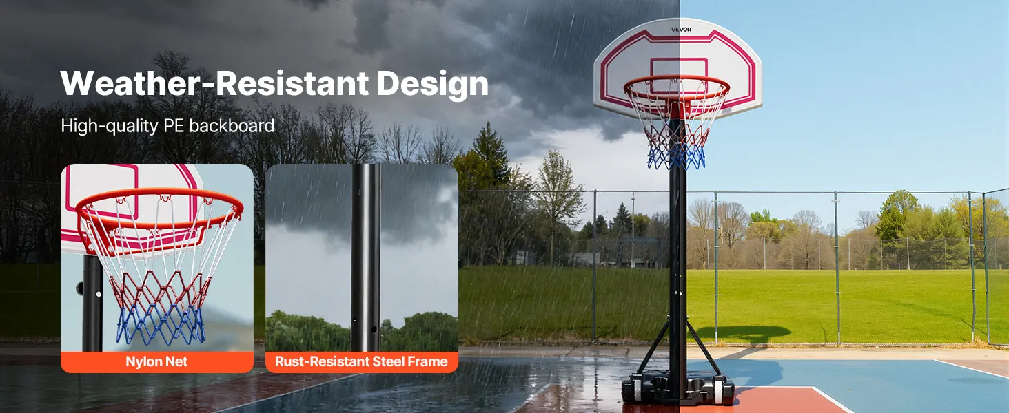 Don't let the weather limit your play with this portable basketball hoop. Made from rust- and corrosion-resistant materials, it withstands harsh outdoor conditions. Enjoy uninterrupted basketball games while the durable frame and weather-ready design keep every session consistent and fun.