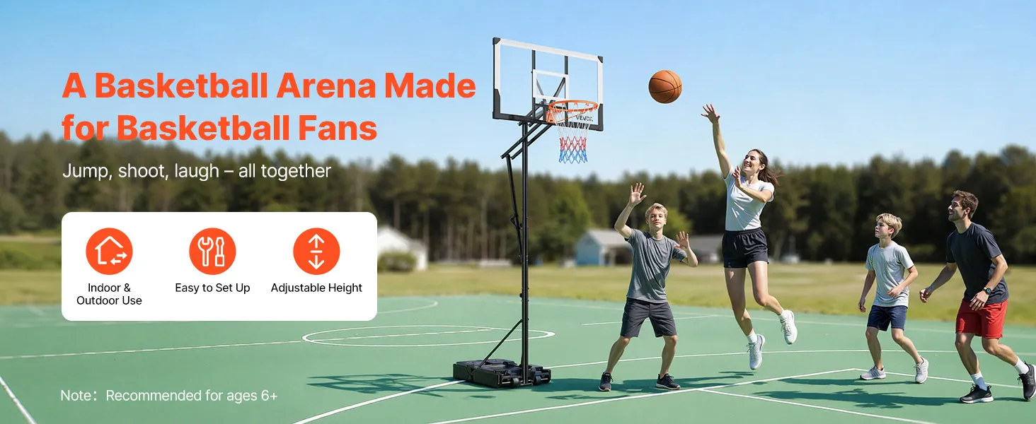 Enjoy the Basketball Game: Designed for fast assembly, this VEVOR basketball court includes all necessary tools. Beginners can install it in minutes and start enjoying basketball fun. Ideal for family or friend gatherings, creating memorable and active playtime experiences
