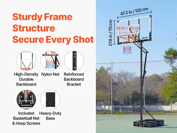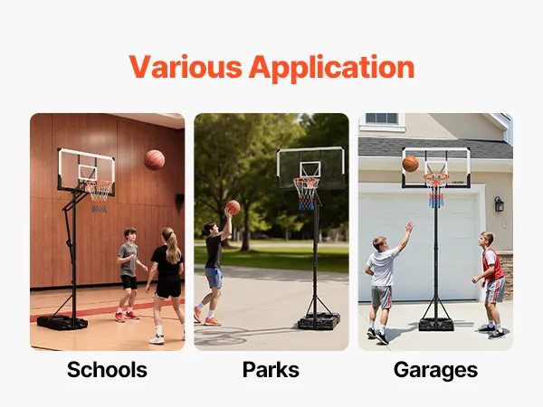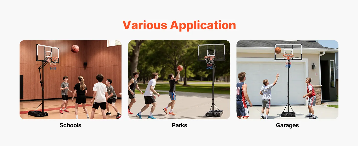Stable Framework: This adjustable basketball goal system combines high-strength square steel with a PC backboard support. A thick base that can be filled with water or sand ensures stability during intense games, allowing children and adults to enjoy dynamic backyard or indoor basketball without interruptions