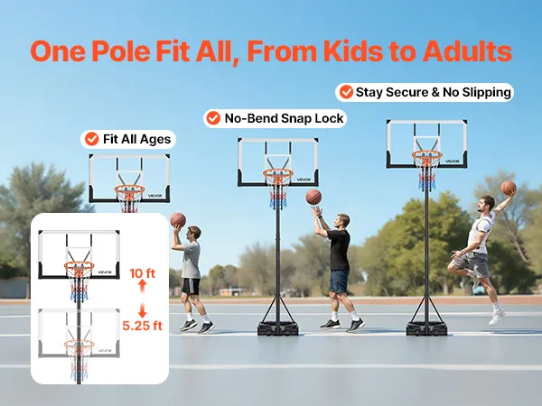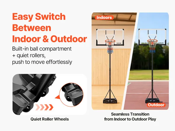 Quick Adjustment: Featuring easy-pull lift mechanism, our basket ball hoop for outdoor ranges from 5.25 to 10 ft/1.6 to 3.05m. Indoor or outdoor switching takes just 3 seconds, allowing players of all ages and skill levels to enjoy efficient and flexible basketball sessions