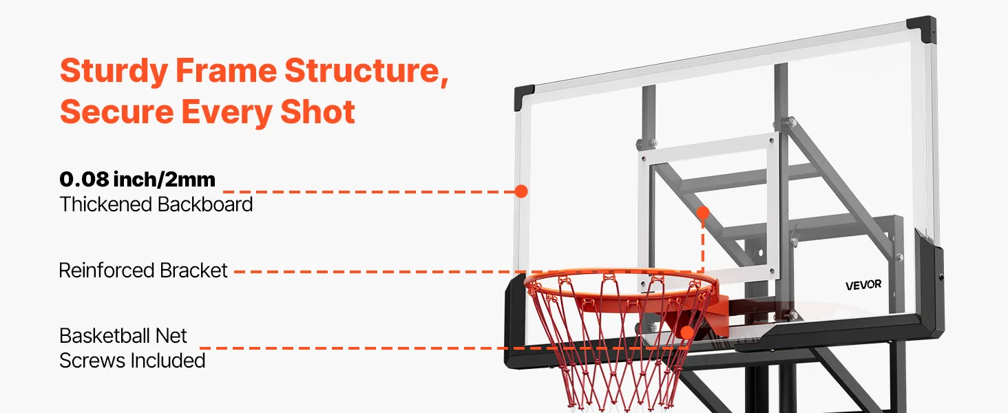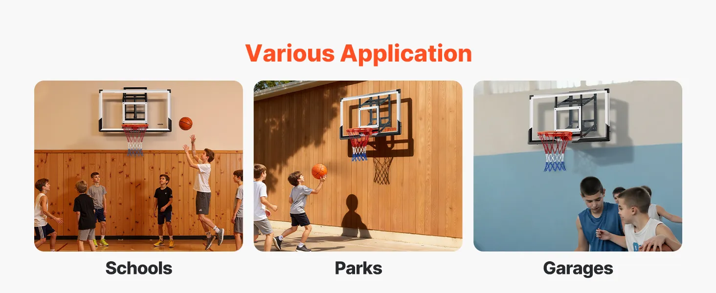 Indoor & Outdoor Friendly: This shatterproof backboard and rim combo kit is ideal for backyards, garages, and gyms, with adjustable height to meet various space requirements. Whether it's sunny or rainy, set it up quickly and enjoy professional-level basketball fun—seamlessly switching between home and outdoor play