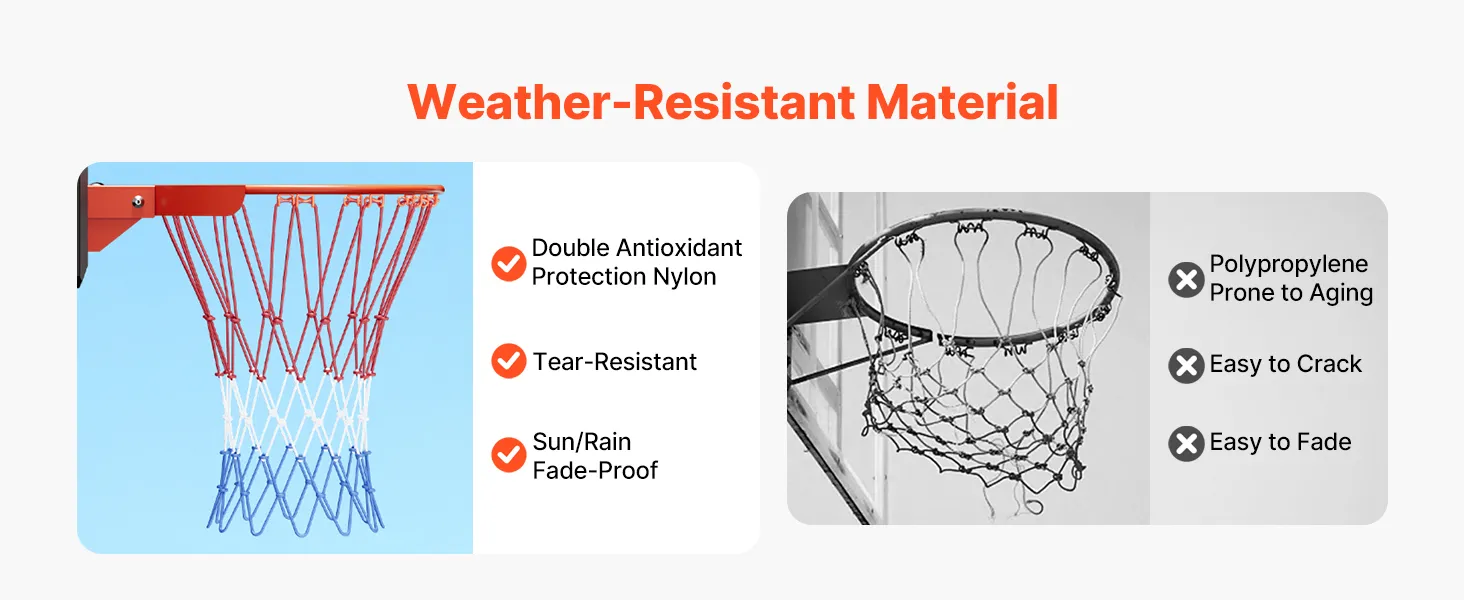 All-Weather Durability: Built to last, the woven net of this wall mount basketball hoop outdoor withstands to weather, tearing, and fading. Tested through extreme conditions, it provides a consistent shooting experience without needing frequent replacements, whether under heavy rain or intense sun