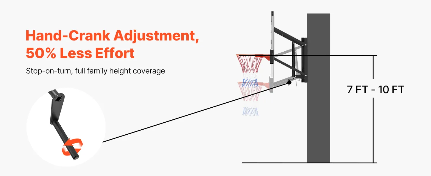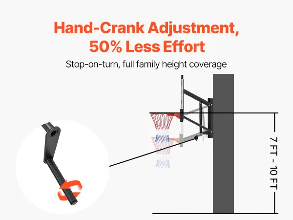 Effortless Height Adjustment: Our basketball hoop mount comes with high-strength expansion bolts for easy, fast installation on concrete surfaces. The hand-crank height adjustment system allows for quick, convenient customization, making it ideal for players of any age and skill level