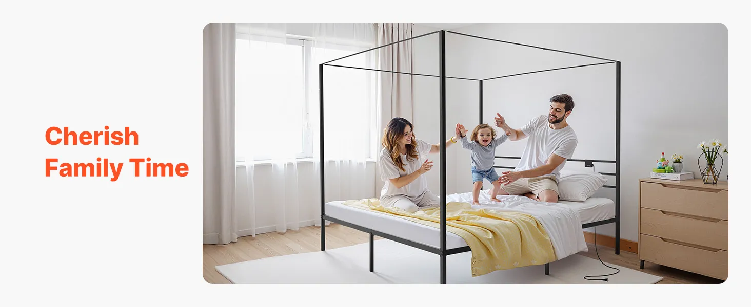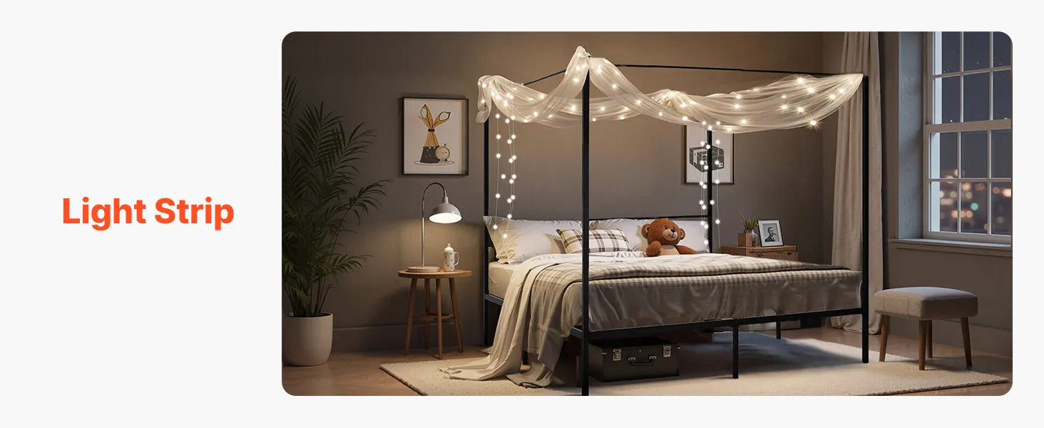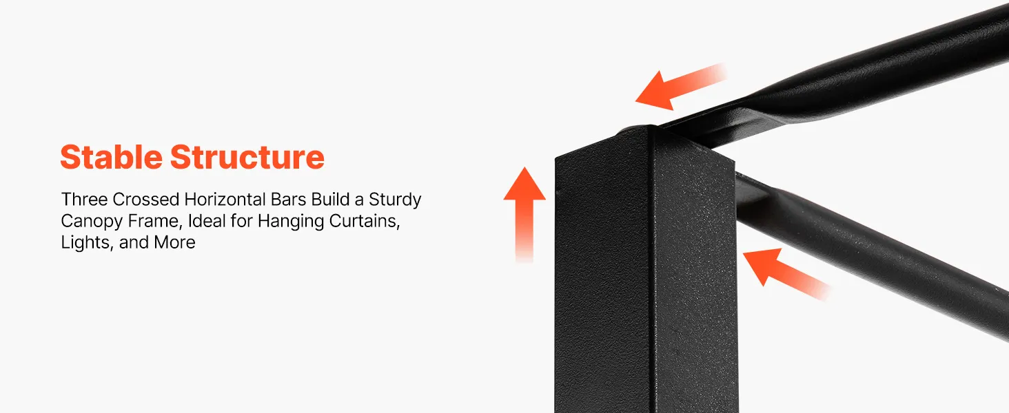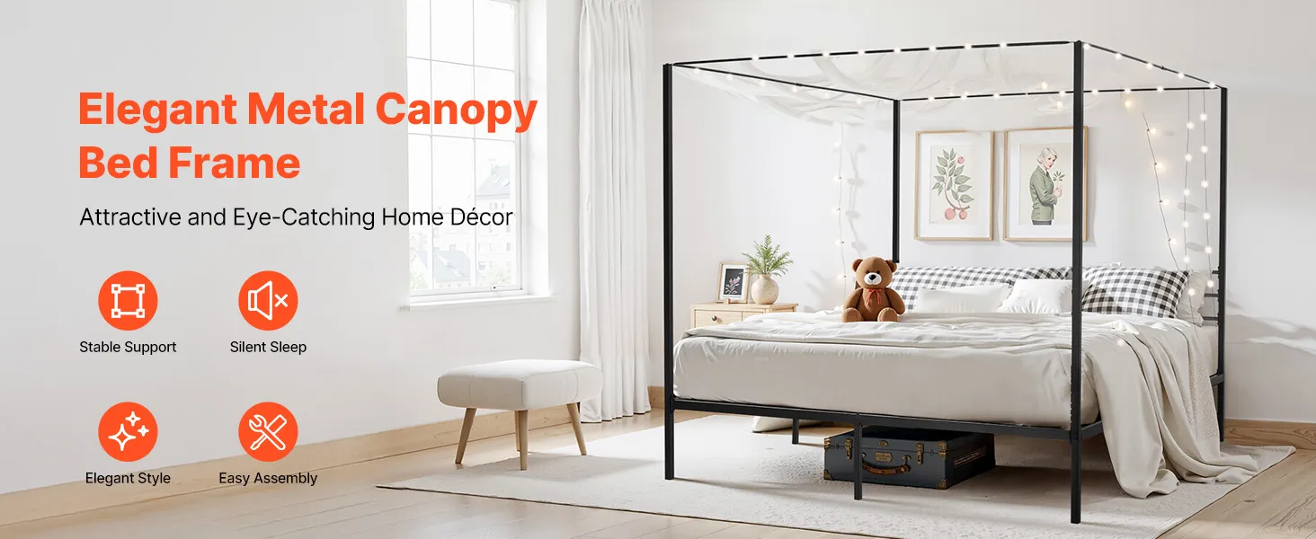 DIY Customization: The canopy rails and posts allow you to easily hang string lights, decorations, and curtains to create a personalized bedroom space