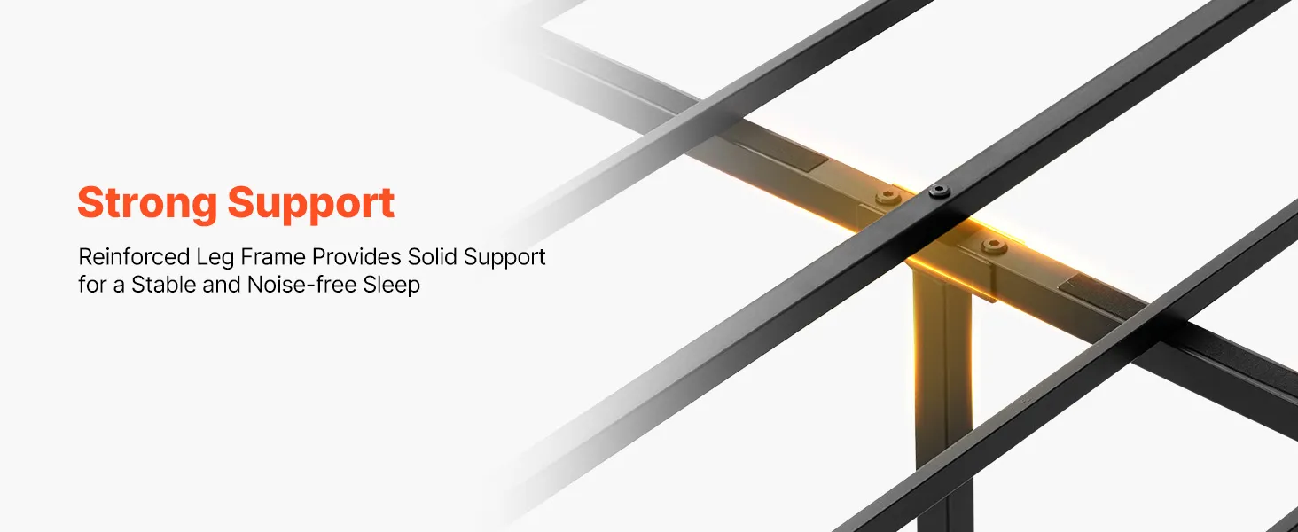 Q1: Does the bed frame wobble or make noise? A1: The frame is reinforced with thickened metal tubes and multi-point connections for enhanced stability. Anti-noise pads are added between key joints to reduce friction noise. As long as all screws are properly tightened during installation, the bed remains quiet and stable throughout use.