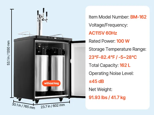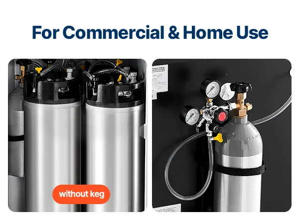 Flawless Compatibility: This kegerator holds 3 Corny kegs, seamlessly fitting into typical American home bars and small commercial pubs. Equipped with a CO₂ tank, it meets diverse installation needs and adapts well to various layout scenarios