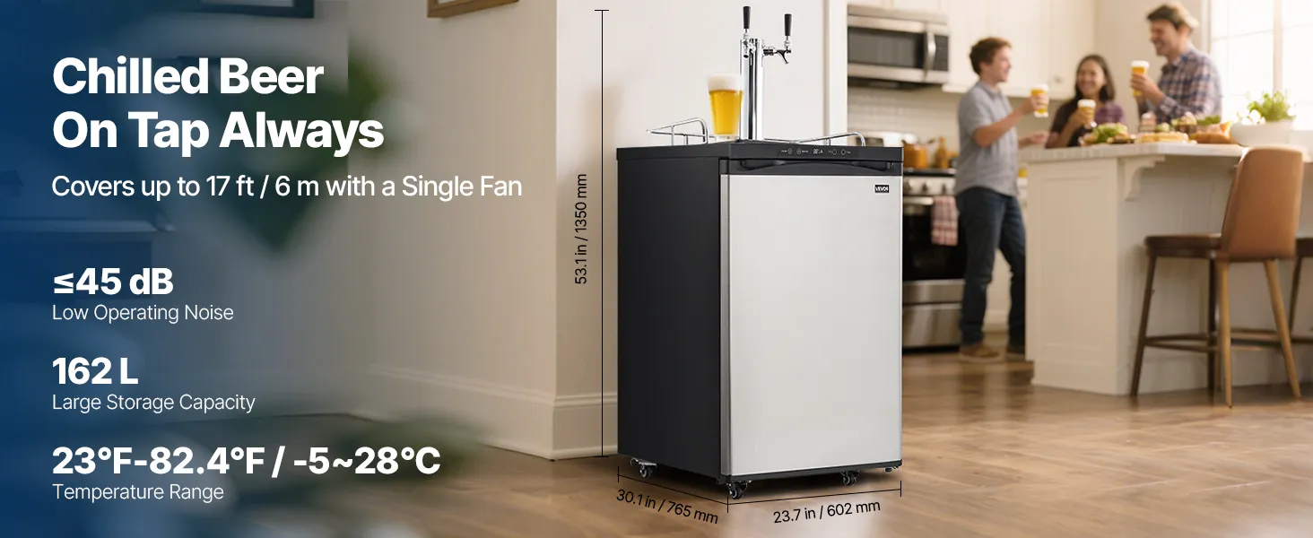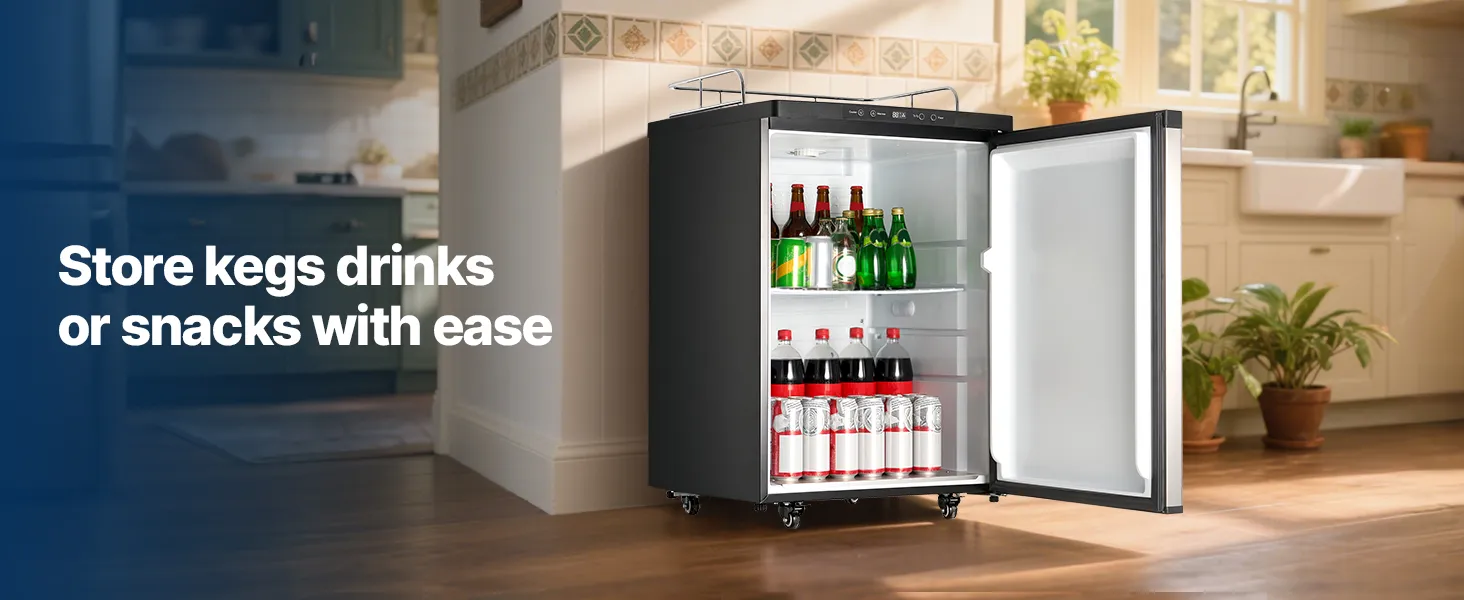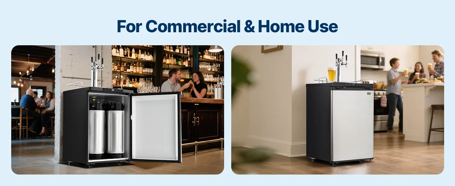 Multi-Function Use: Flawless as a keg o rator during parties for fresh draft beer, and easily switches to a beverage cooler for everyday use. Ideal for homes, small bars, microbreweries, and craft beer studios—one appliance, multiple role