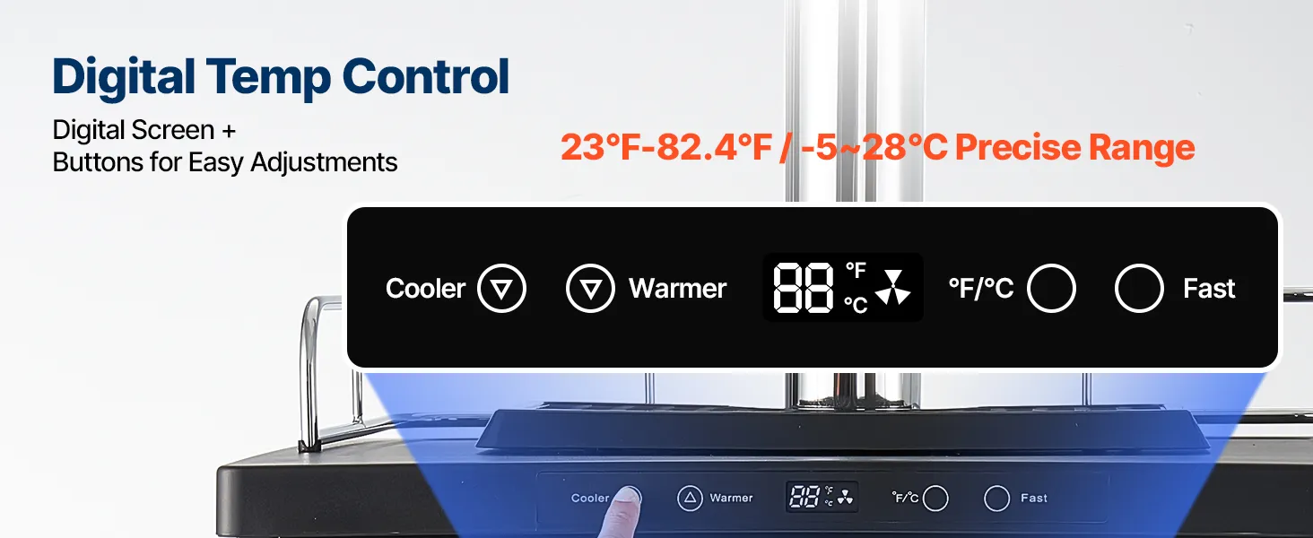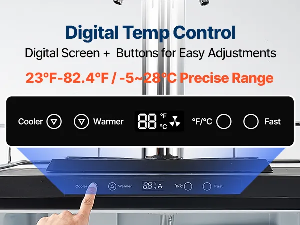 Outstanding Freshness: With a powerful compressor system, this unit offers precise temperature control from 23℉ to 82.4℉ / -5℃ to 28℃. A digital display and push-button controls make it easy to adjust. Auto defrost and fan-forced air circulation ensure even cooling, smooth flow through beer lines, optimal foam, and memory recall after a power outage