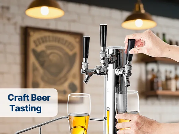 Supports 3 corny kegs and a 5 lbs CO₂ tank with flexible configuration. It features precise temperature control, smooth beer dispensing, and multi-scenario adaptability, making it ideal for home parties and compact business environments.