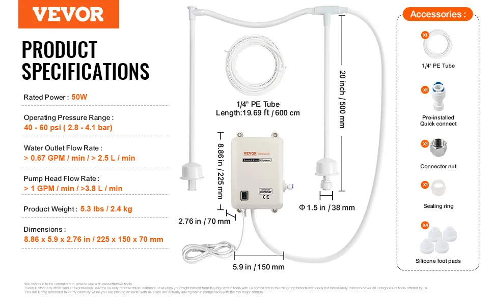 Setting up the VEVOR 120v bottled water pump is easy. It includes all the necessary fittings for quick installation. You can get it up and running with minimal effort. The pump has a user-friendly design, making setup easy for everyone. No special tools or skills are required to install it. Clear instructions help you connect it without any trouble. This ease of setup saves you time and reduces frustration. Our pump’s design ensures it maintains a secure and reliable connection. Fits seamlessly into your existing water system. The convenience of easy setup makes this pump a favored choice. Get clean water without delays; we provide practical solutions for all your water pump needs.