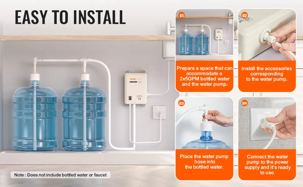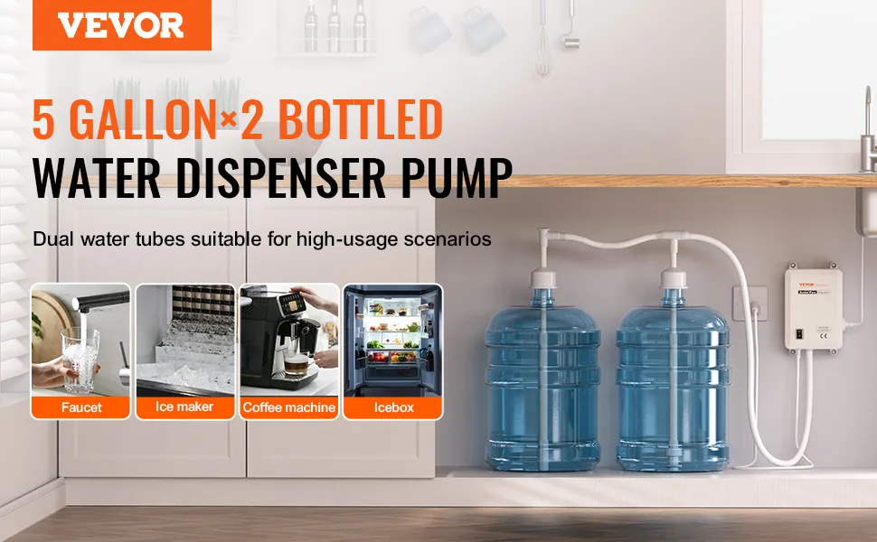 VEVOR Bottled Water Dispenser Pump System, 2x5 Gallon Dispensing System, Automatic Electric Water Dispenser, Double-Pipe Water Jug Pump, Compatible Use with Coffee/Tea Machine, Refrigerator, Ice Maker VEVOR Bottled Water Dispenser Pump System, 2x5 Gallon Dispensing System, Automatic Electric Water Dispenser, Double-Pipe Water Jug Pump, Compatible Use with Coffee/Tea Machine, Refrigerator, Ice Maker
