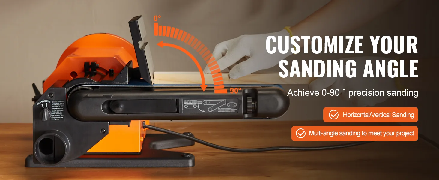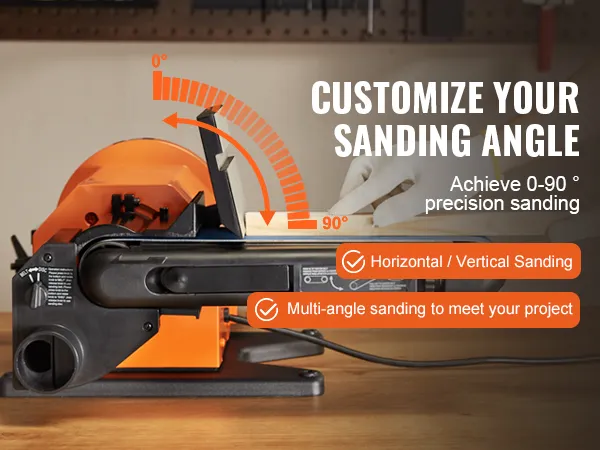 Multi-Angle Precise Sanding: The sanding belt can be tilted from 0 to 90 degrees for horizontal and vertical sanding, allowing you to achieve different angles for your sanding projects.