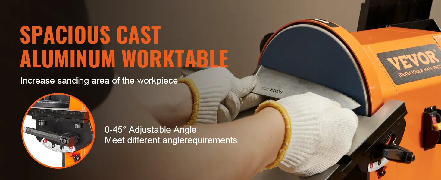 Easy to Use: Our spacious cast aluminum worktable can be tilted from 0 to 45 degrees. Enables you to find the optimal operating position and angle based on your specific sanding needs.