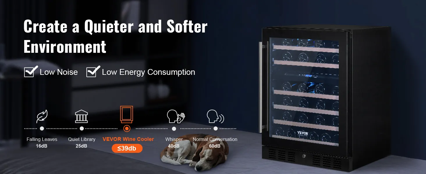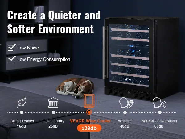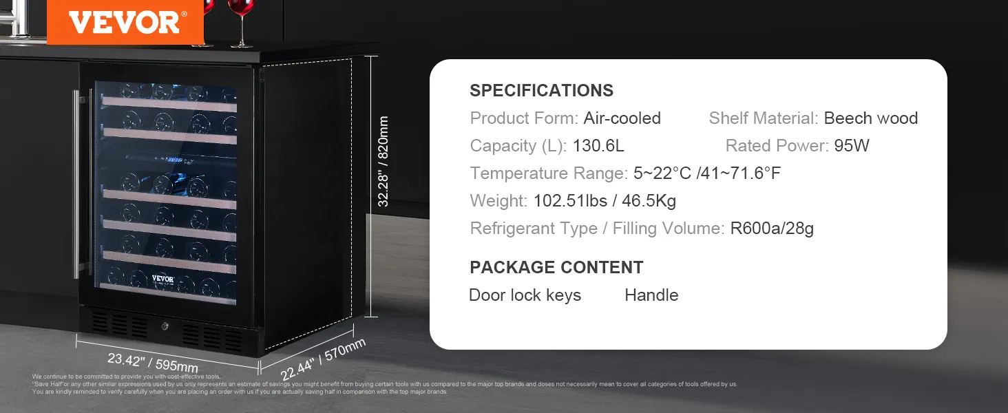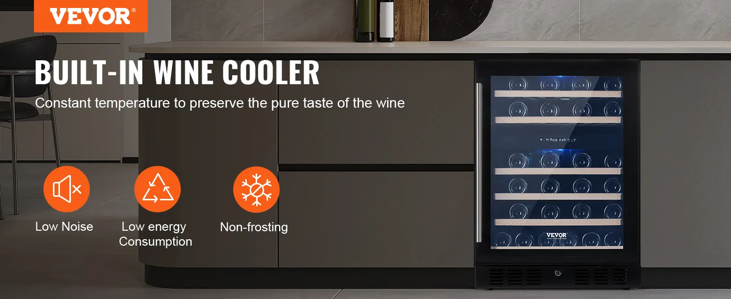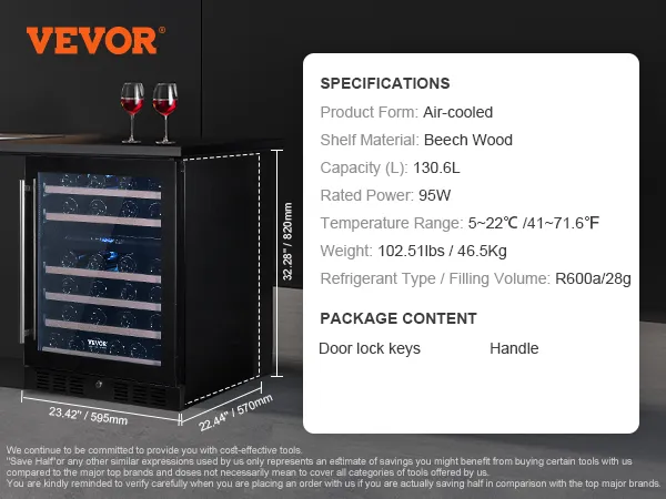 The VEVOR wine cooler has a stylish and robust design. Beech wood shelves add a slant of class. A single glass door looks modern and clean. It is built to last with solid quality construction. The attractive appearance makes it a centerpiece in any home. Both built-in and freestanding options are available. This flexibility ensures it fits seamlessly into any setting. It combines aesthetics with durability, making it an intelligent investment.