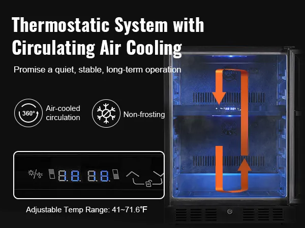 Constant Temperature Setting: You can set the temperature by touching the electronic screen (41~71.6℉ adjustable), even if there is an accidental power failure, there is no need to worry, the original setting temperature will be restored automatically after the power is turned on.